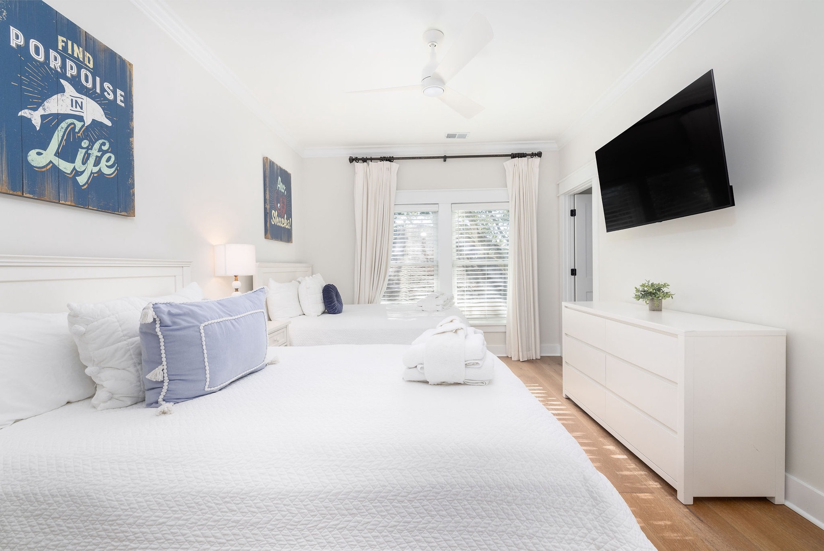 Welcome to Bikinis and Martinis, a stunning 5-bedroom, 5.5-bathroom home located just a block from the beach on Isle of Palms. This luxury retreat offers an open-concept design with a game room and seamless indoor-outdoor living, perfect for families or groups of friends seeking relaxation and beachside fun.