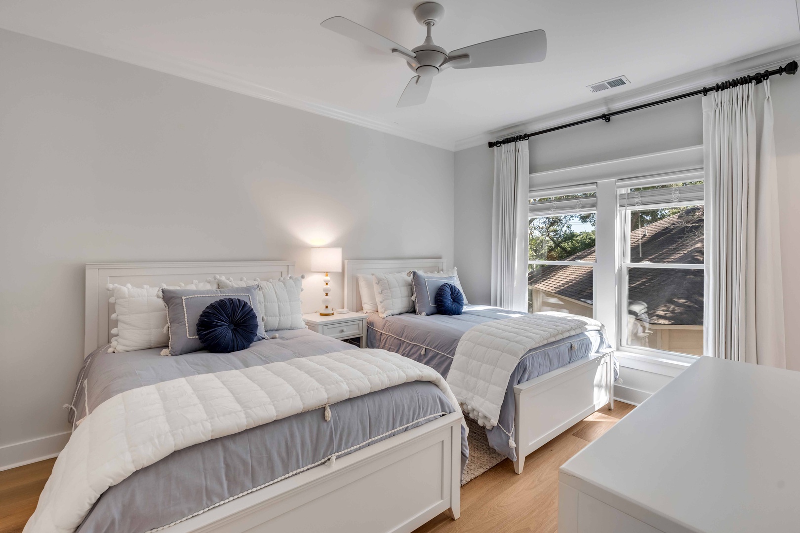 Light-filled coastal comfort with crisp whites and calming blues featuring double full sized beds