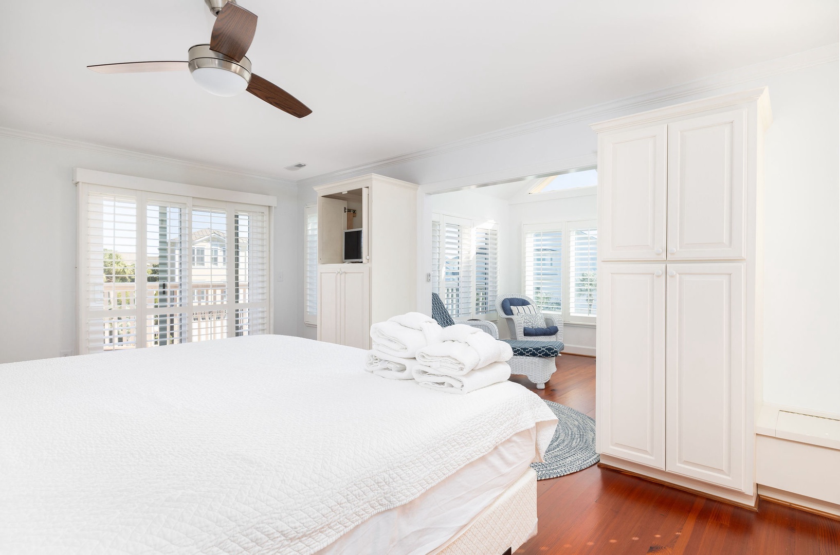 Welcome to Second Wind, a 5-bedroom, 3.5-bathroom elevated beach house located steps from the sand on the serene Isle of Palms. With breathtaking ocean views, an open and airy interior filled with natural light, and plenty of space for family and friends, this home is a true coastal retreat. Situated at the end of a quiet dead-end street, Second Wind offers tranquility, ample parking, and the perfect spot for soaking in the sea breeze from the spacious porch.