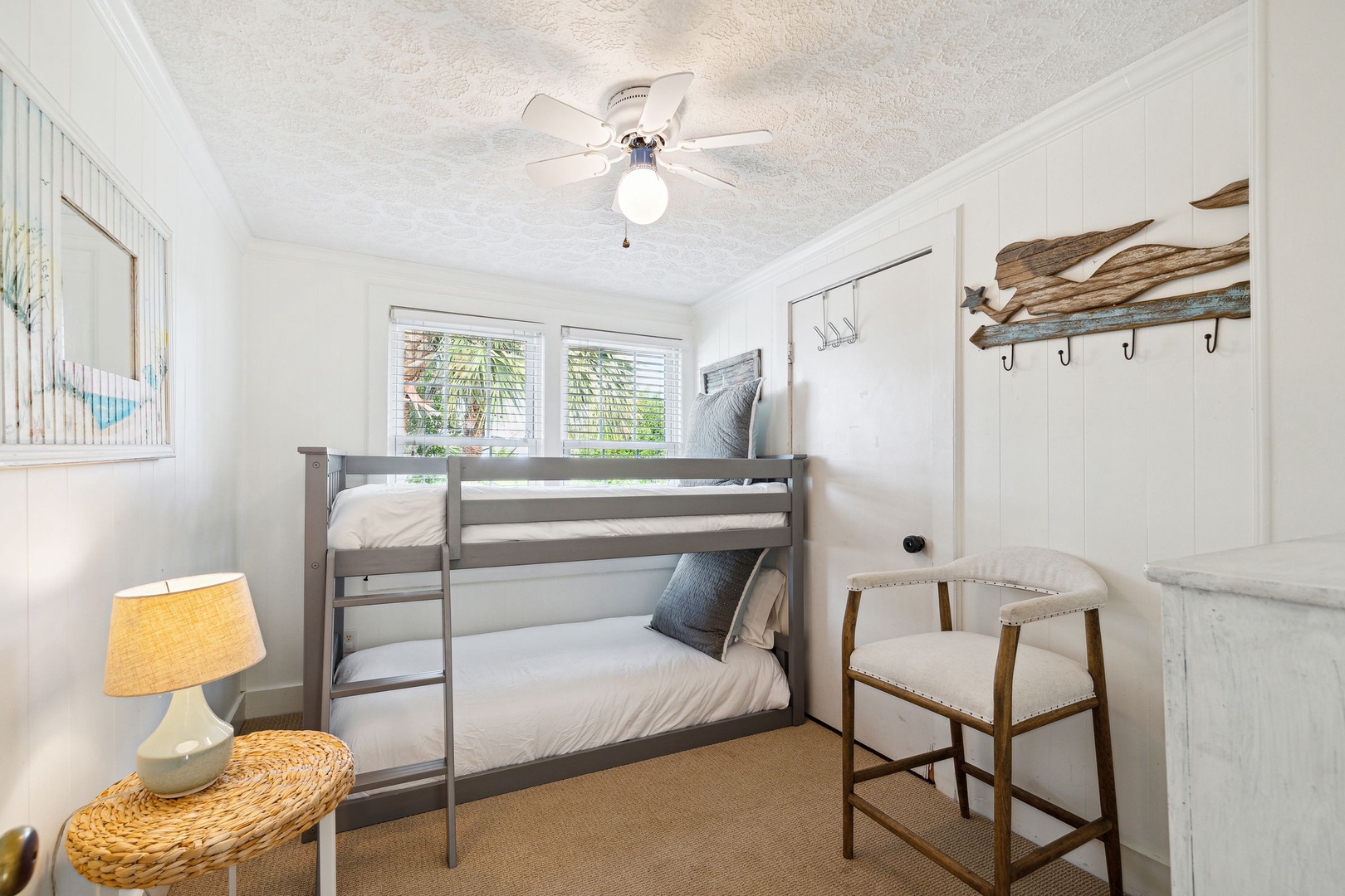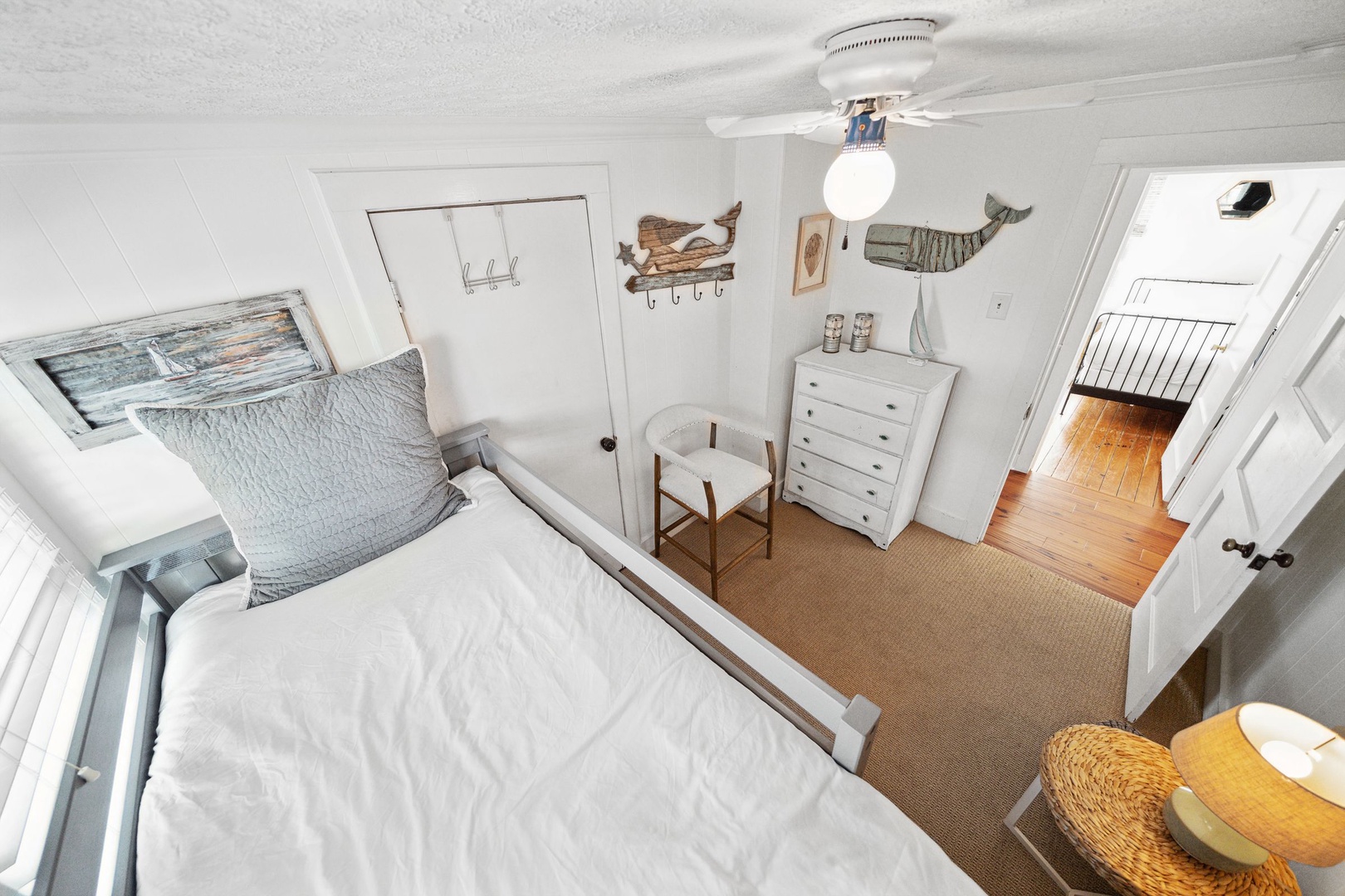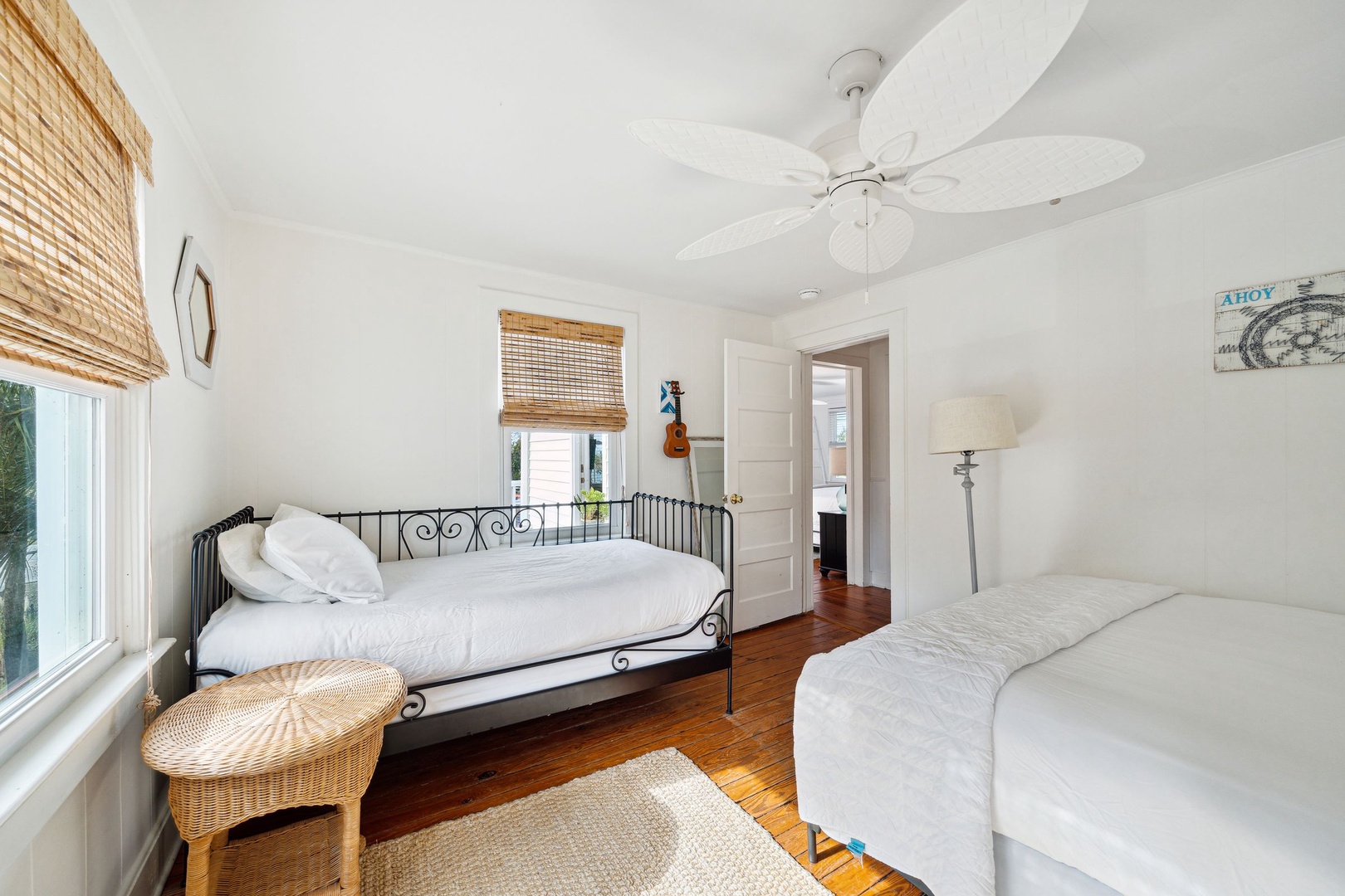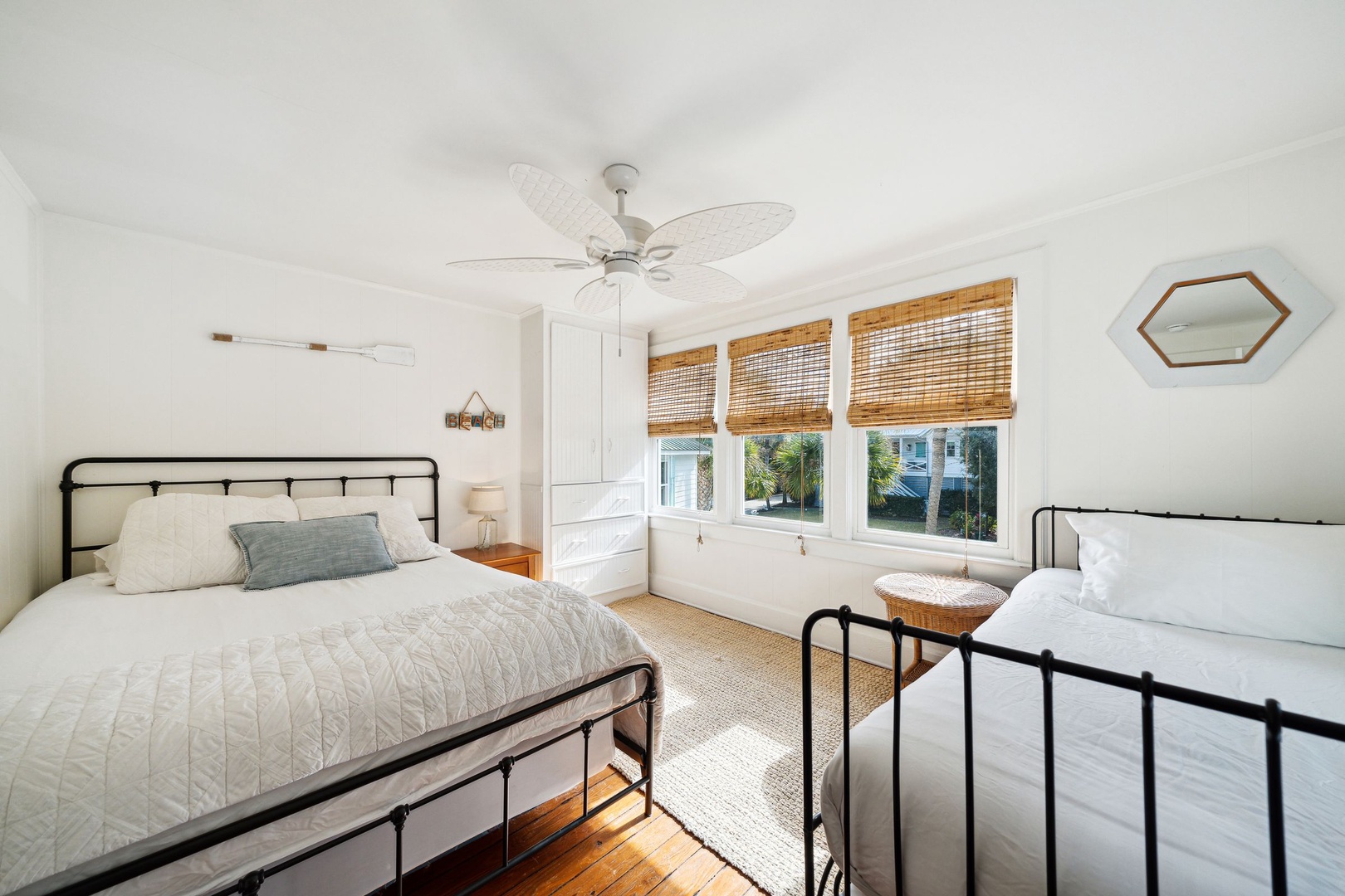 Light, airy, and relaxing bedroom with a queen and twin bedroom