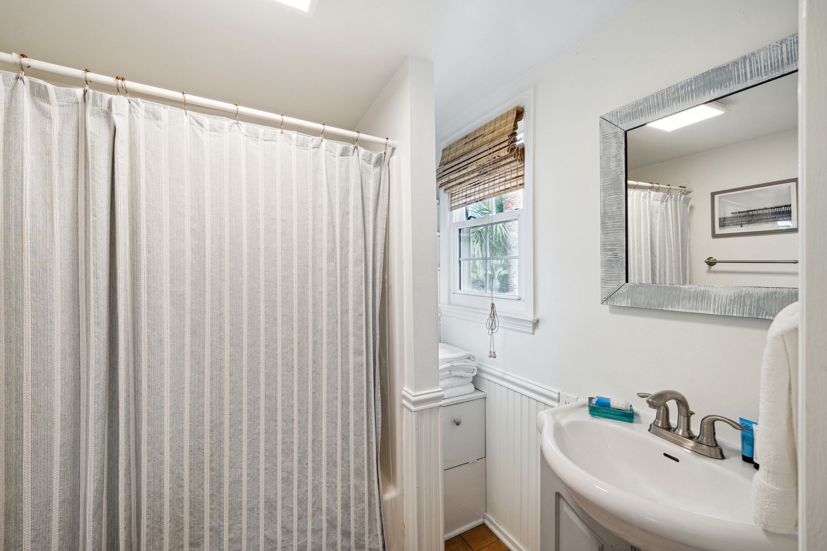 Two full bathrooms, one on each floor.