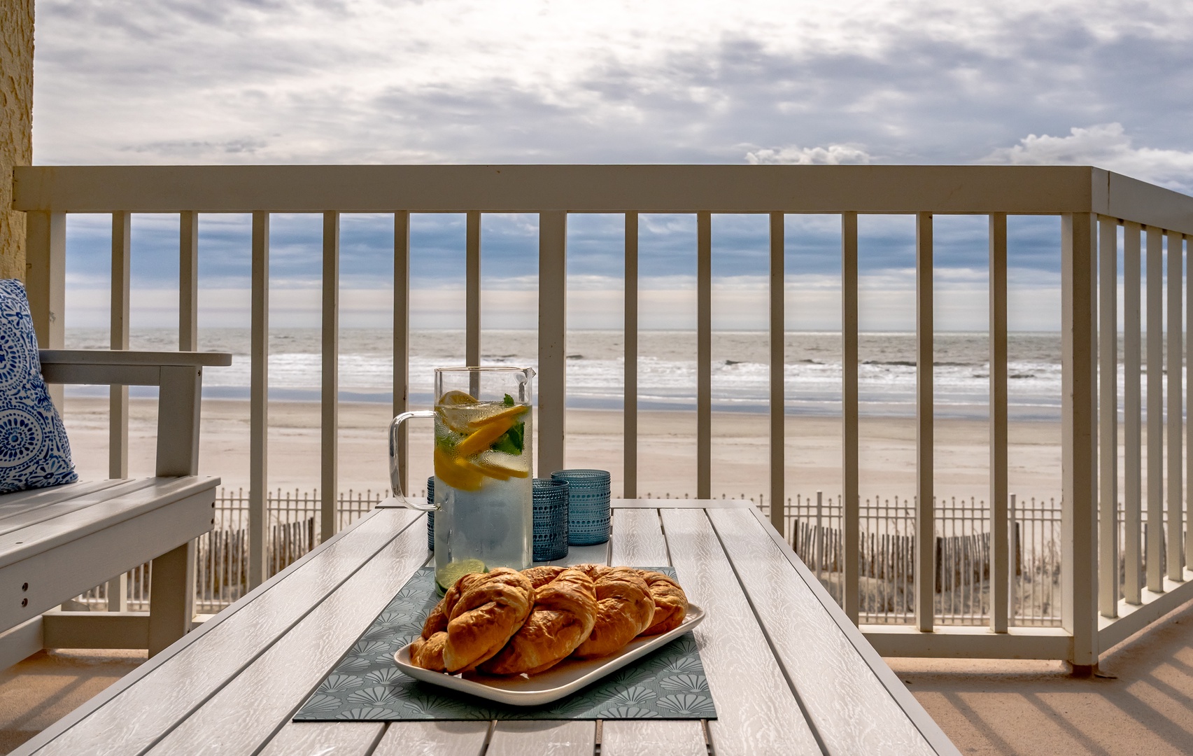 Savor fresh pastries and refreshing drinks on your private balcony while gazing at endless ocean waves and sandy shores.