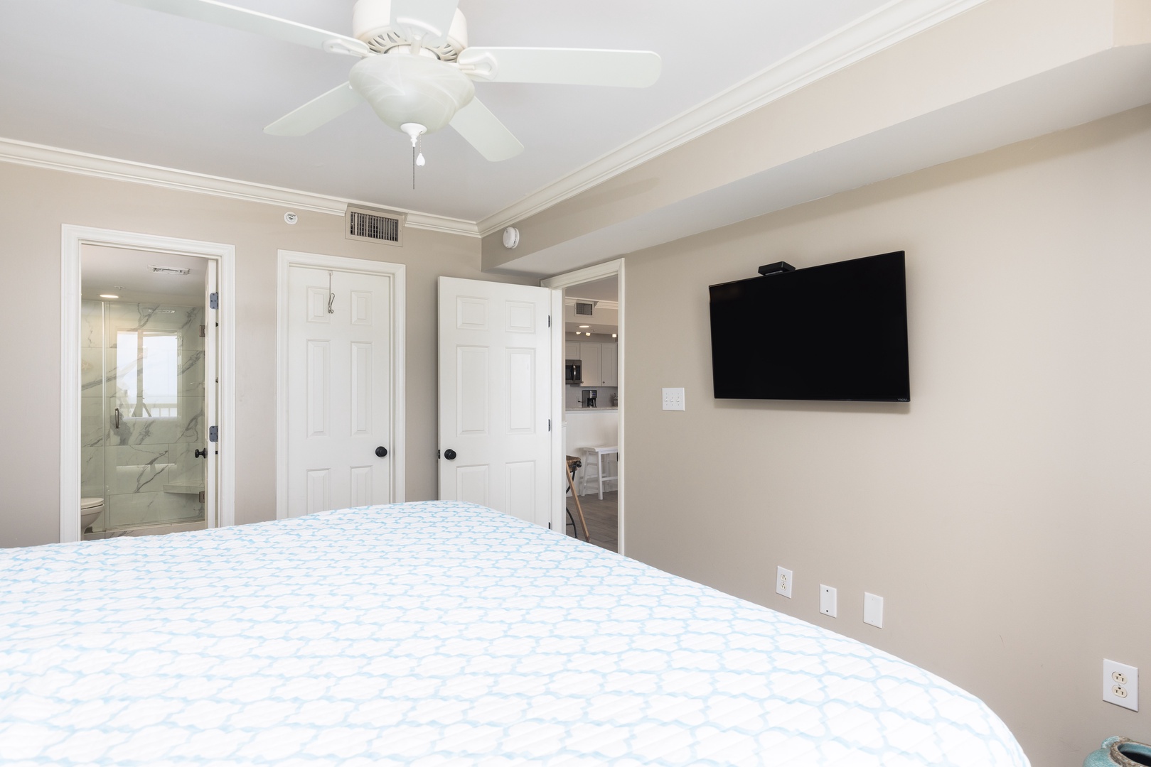 Primary Bedroom: An extra-large room with direct ocean views, an en-suite bathroom featuring a huge walk-in shower, and double sinks for added convenience.