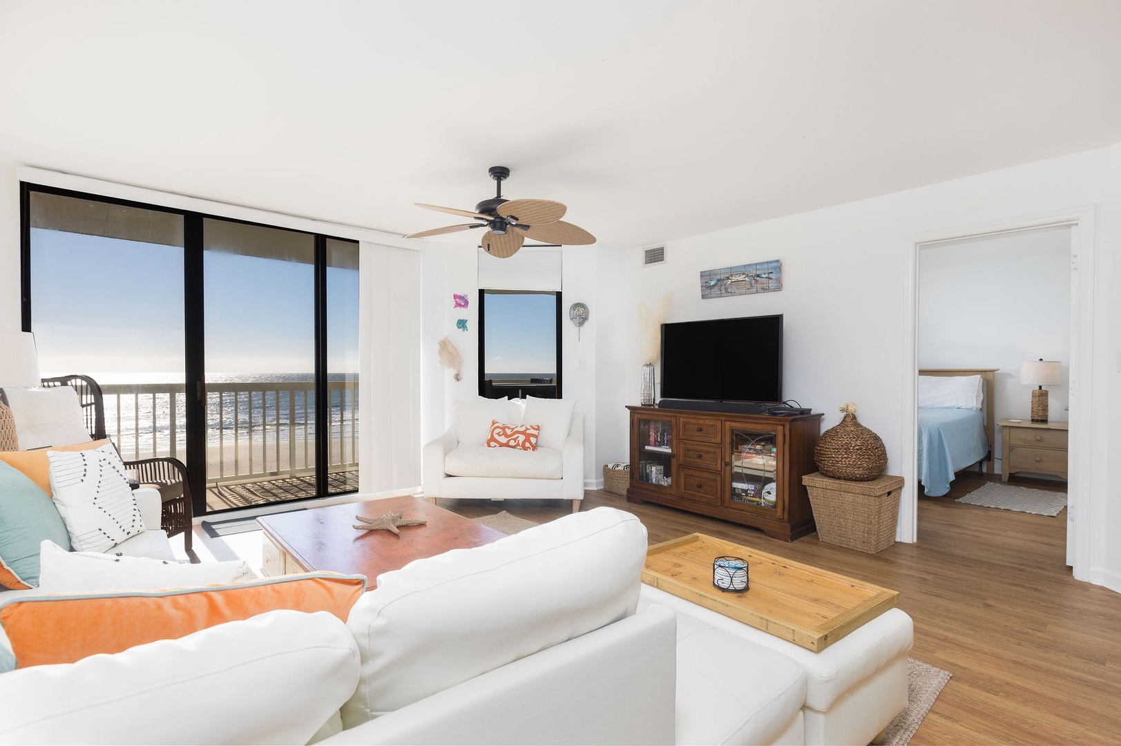 Living Area: Spacious living room with ocean views and access to a private balcony.