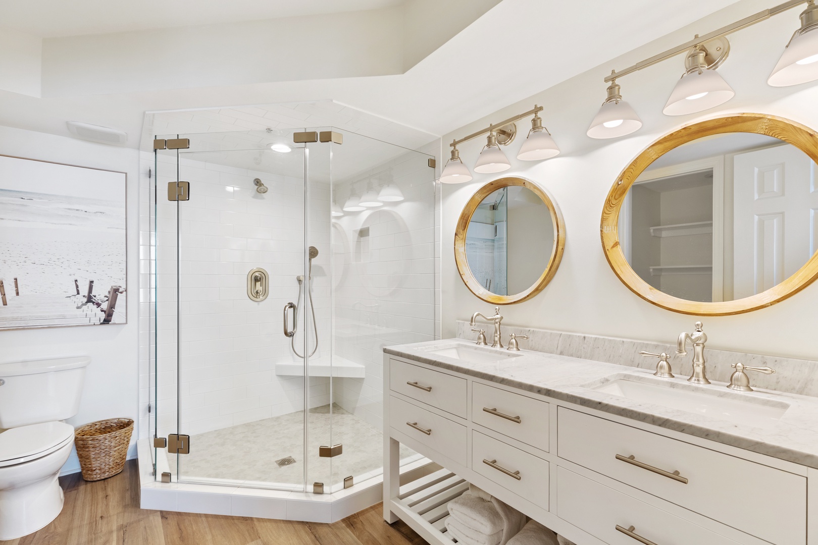 All three bathrooms are fully renovated with modern fixtures, including spacious showers, fresh towels, and complimentary toiletries.