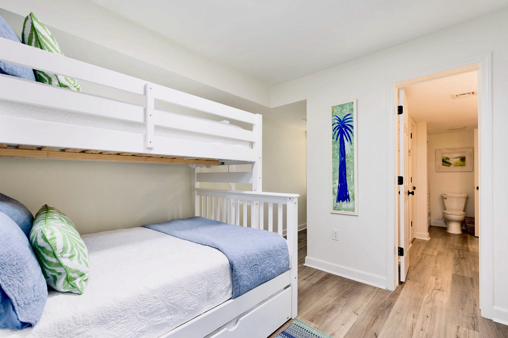 Welcome to Petite SurSea, a beautifully renovated 4-bedroom, 3-bathroom oceanfront condo located in the heart of Folly Beach. Tastefully decorated in warm, neutral tones with beach-inspired accents of light green and blue, this space provides the perfect environment for a relaxing getaway. The oceanfront deck offers stunning views of the beach, surfers, dolphins, and the Folly Pier. Enjoy the unmatched scenery while sipping a cocktail prepared at the custom dry bar. Whether you're here for a family vacation or a group retreat, Petite SurSea offers a serene, stylish stay.