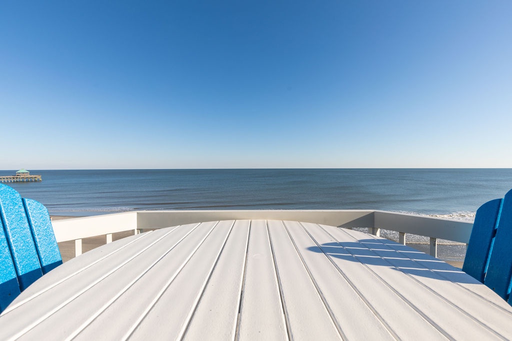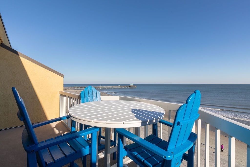 Oceanfront Views: Enjoy breathtaking views of the Folly Beach Pier from the private balcony, living room, and master bedroom.