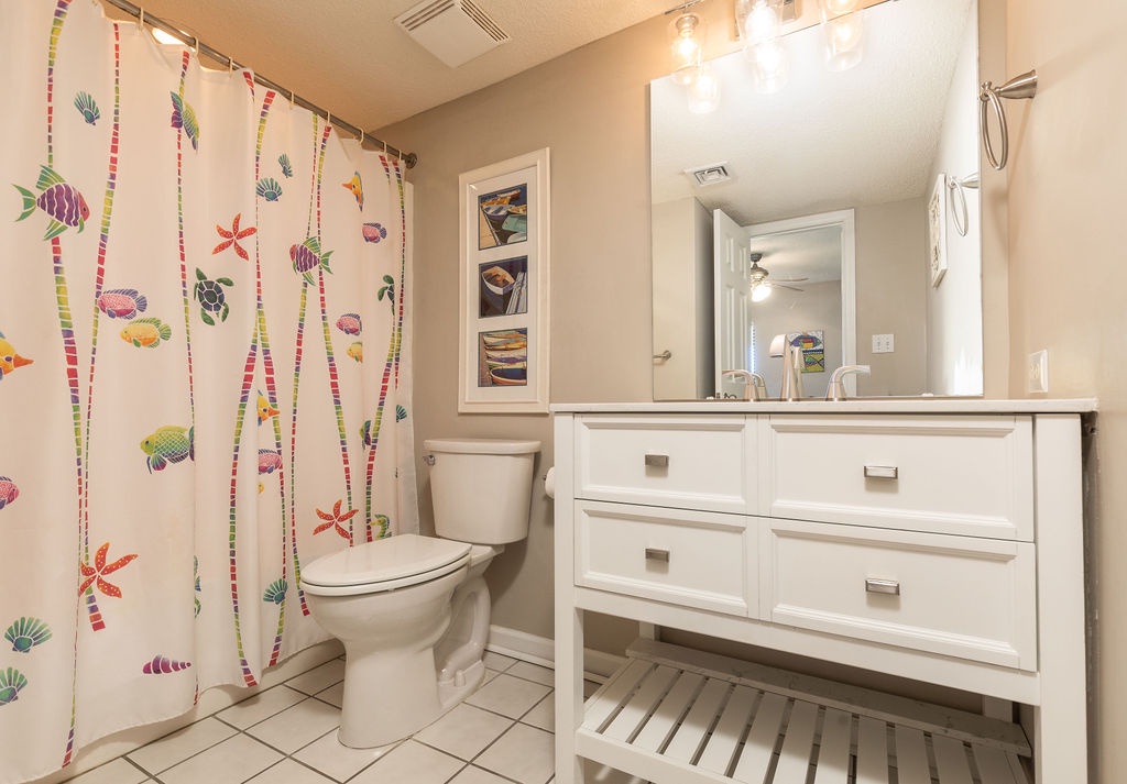 All three bathrooms are updated with modern fixtures and fresh towels, ensuring comfort for all guests.