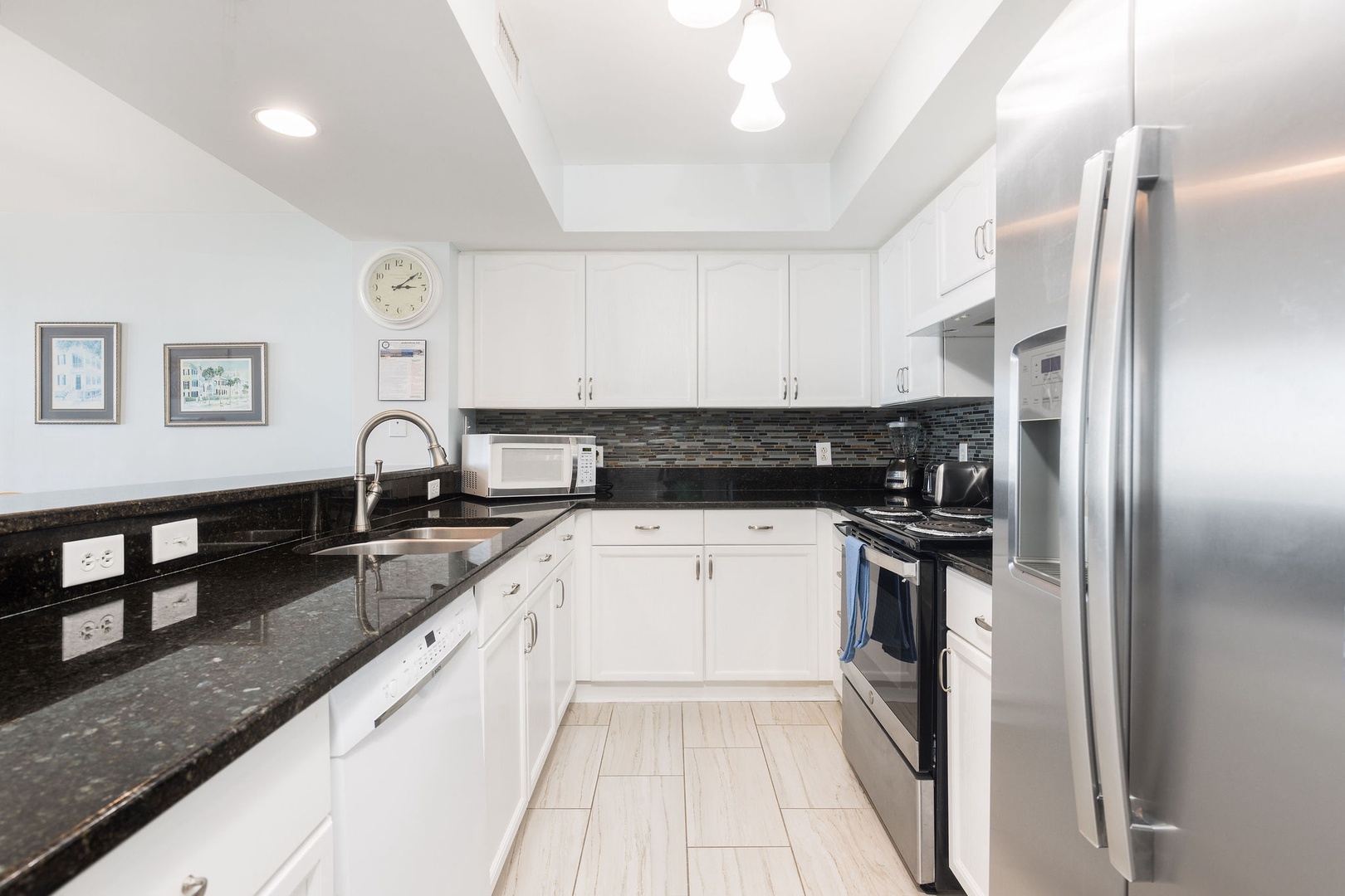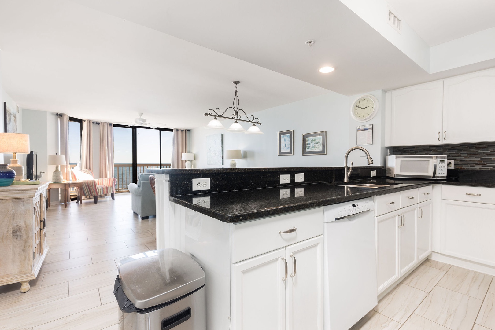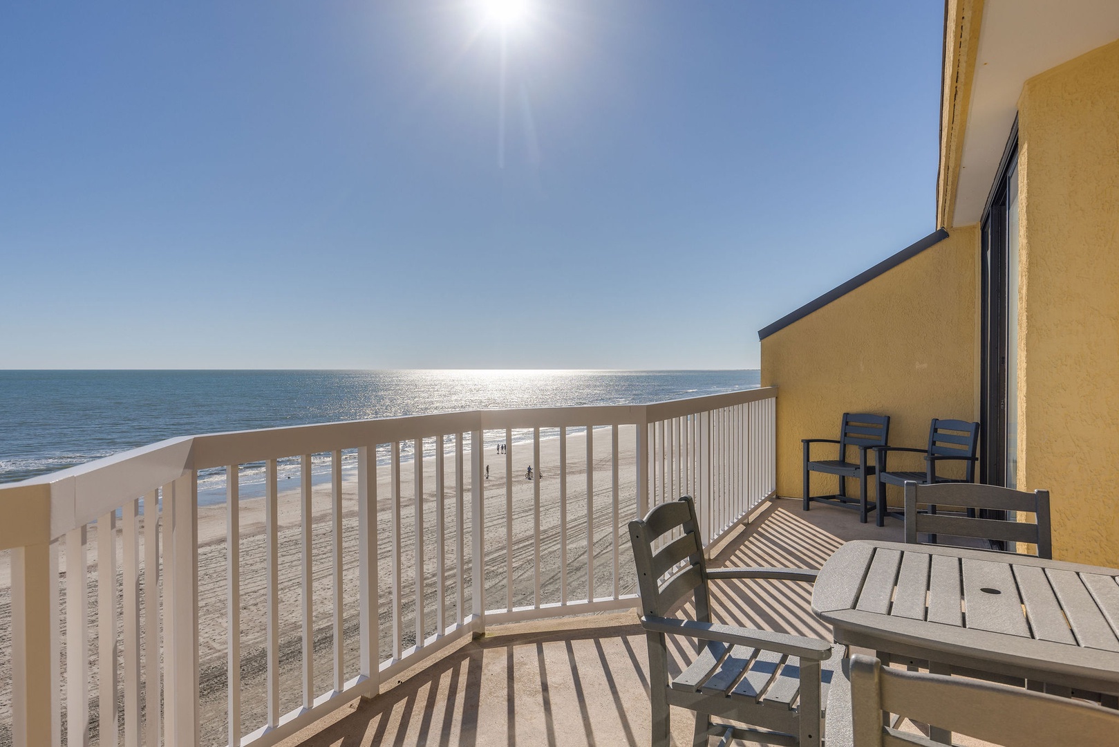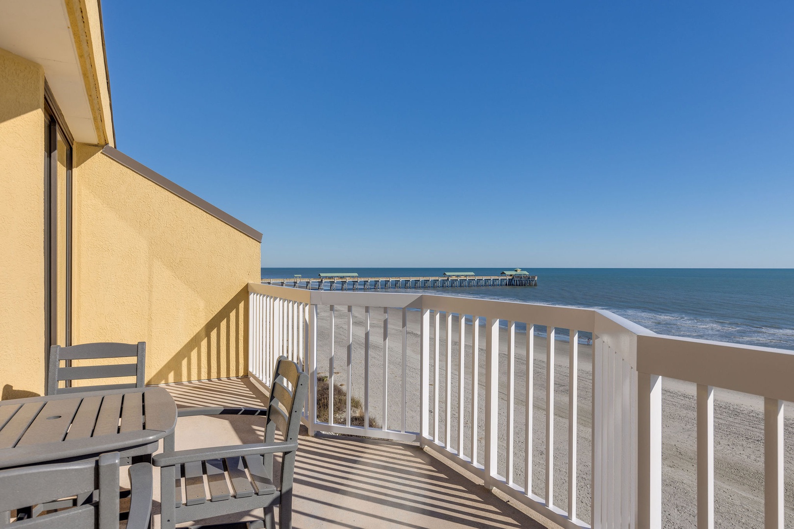 Oceanfront Views: Enjoy panoramic ocean and pier views from the private balcony, living room, and master bedroom.