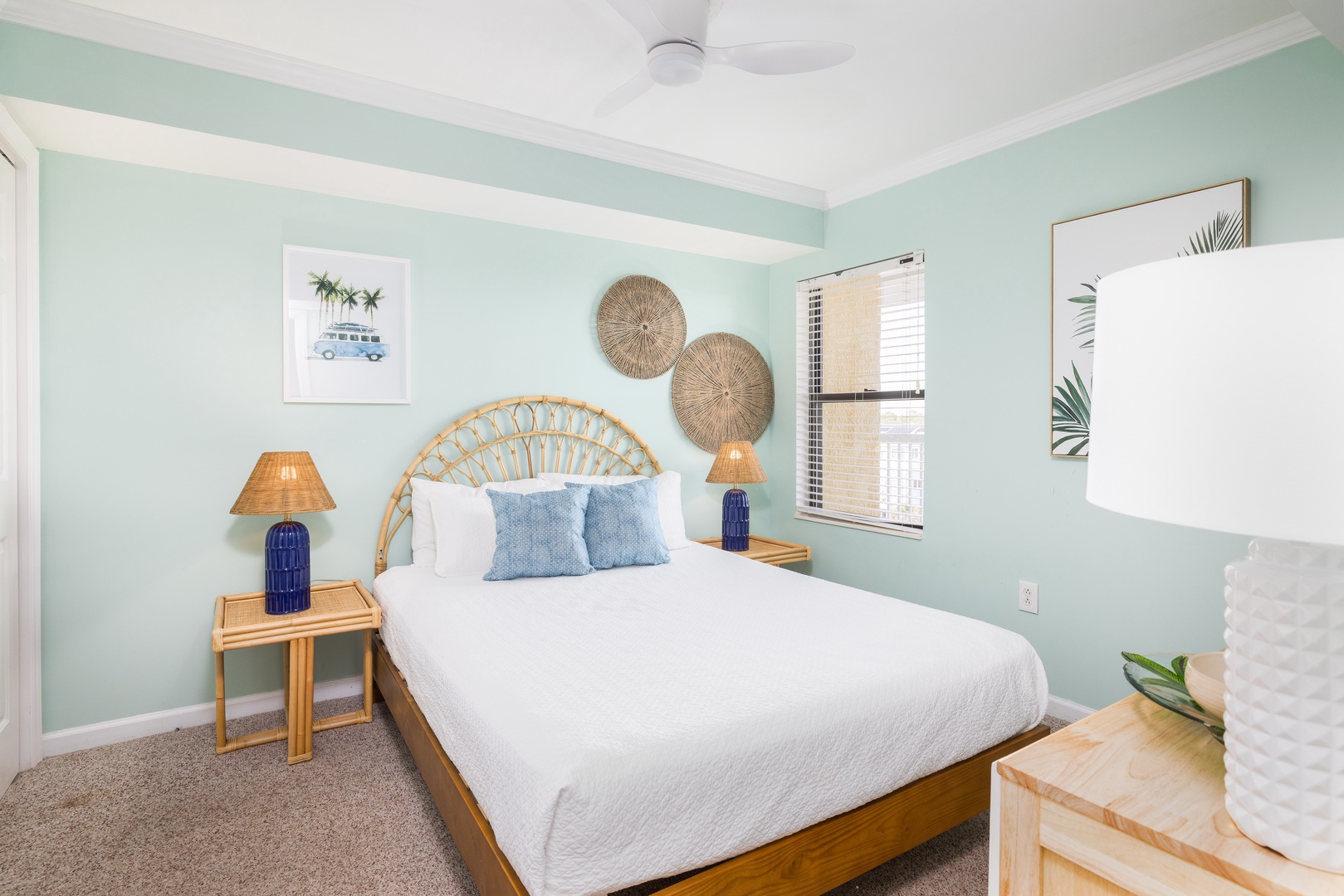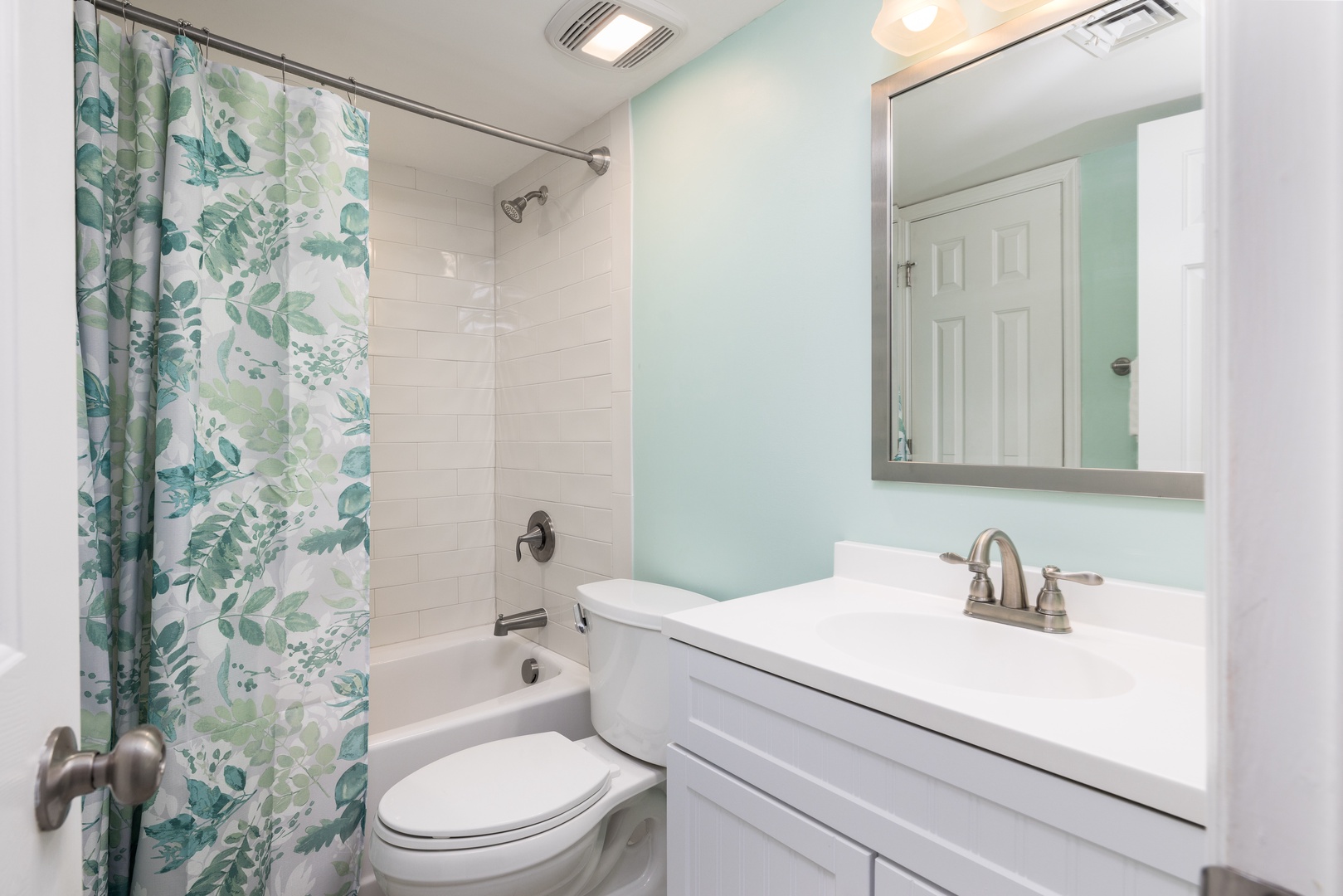 All three bathrooms are stylishly designed with tile flooring and coastal-inspired decor, providing a refreshing ambiance. Fresh towels and complimentary toiletries are provided for your convenience.