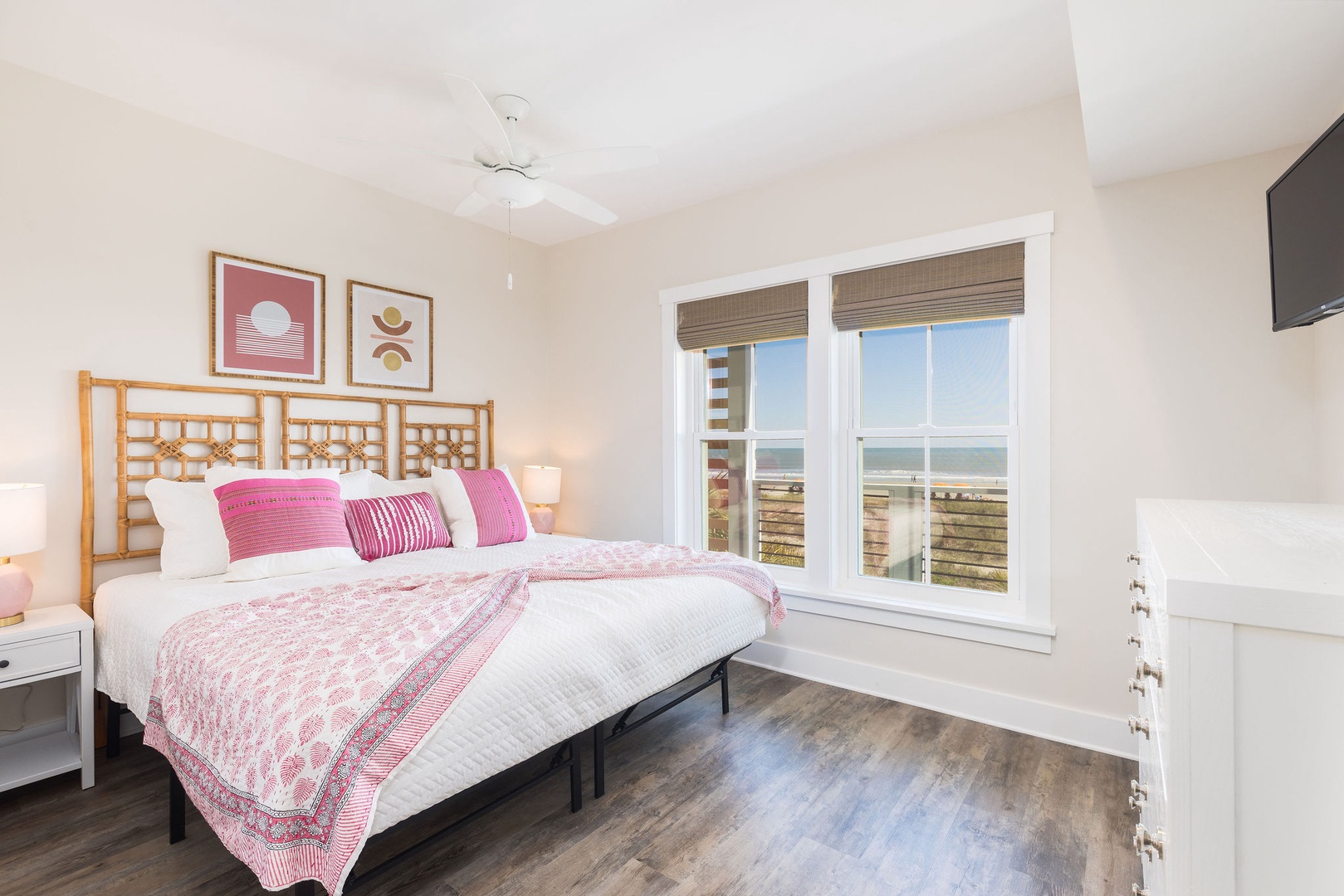 Master Bedroom: King bed with ocean views, en-suite bathroom, and access to the ocean-view deck for morning coffee or evening relaxation.