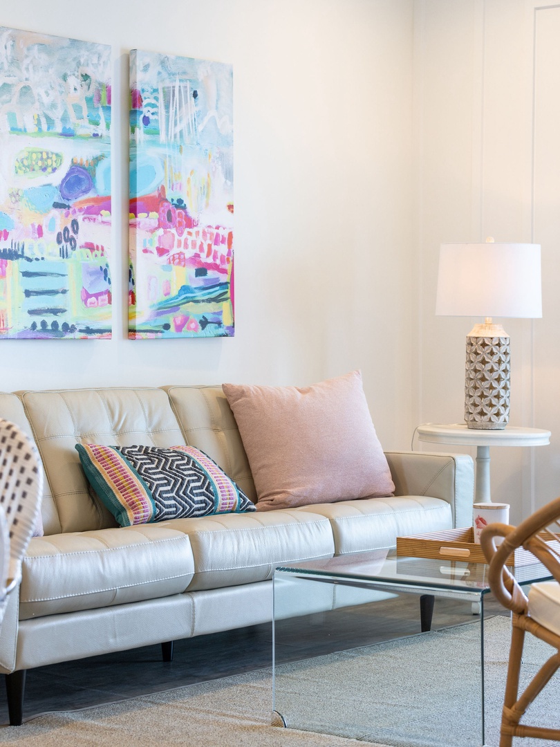 Relax in the comfortable living area, designed with coastal charm and large windows to showcase breathtaking ocean views. The open-plan layout connects seamlessly to the dining area, creating a welcoming space for relaxation and conversation.