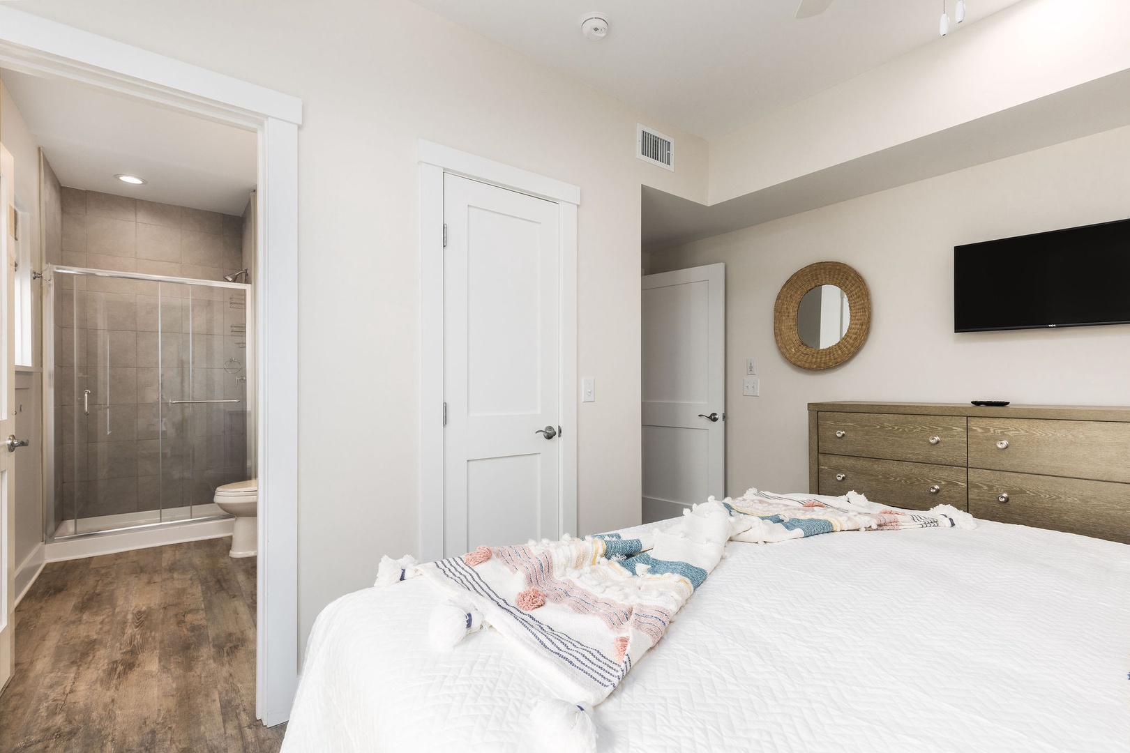 Guest Bedroom: King bed with a private en-suite bathroom, providing privacy and comfort for all guests.