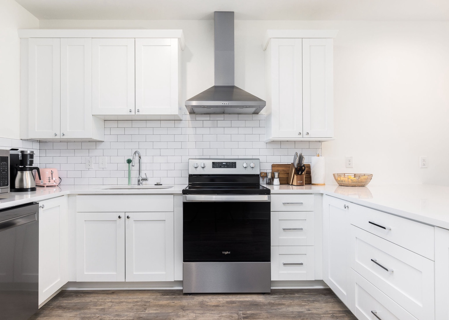 The fully equipped kitchen includes modern appliances, ample counter space, and an open layout that seamlessly connects to the dining and living areas, making it perfect for preparing and enjoying meals with family and friends.