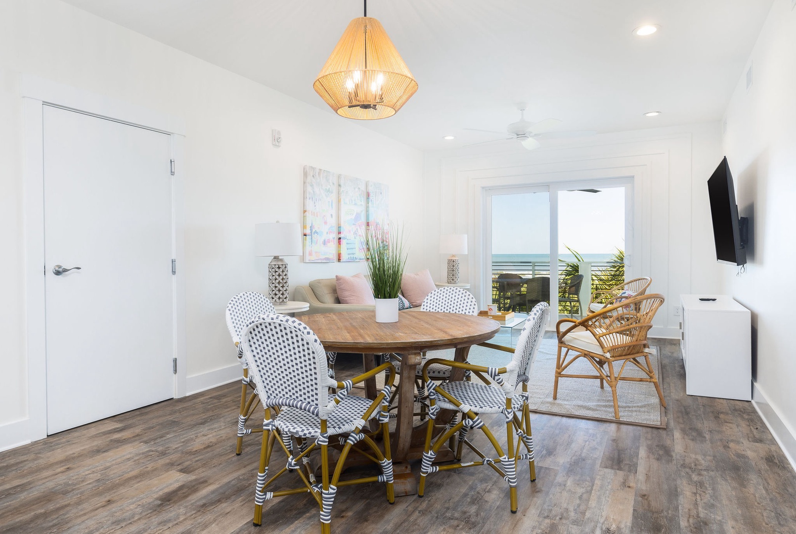 Enjoy breathtaking ocean views from the spacious living and dining area, which offers ample seating and a serene atmosphere. Large windows bring in natural light, creating a calming ambiance that perfectly complements the coastal surroundings.