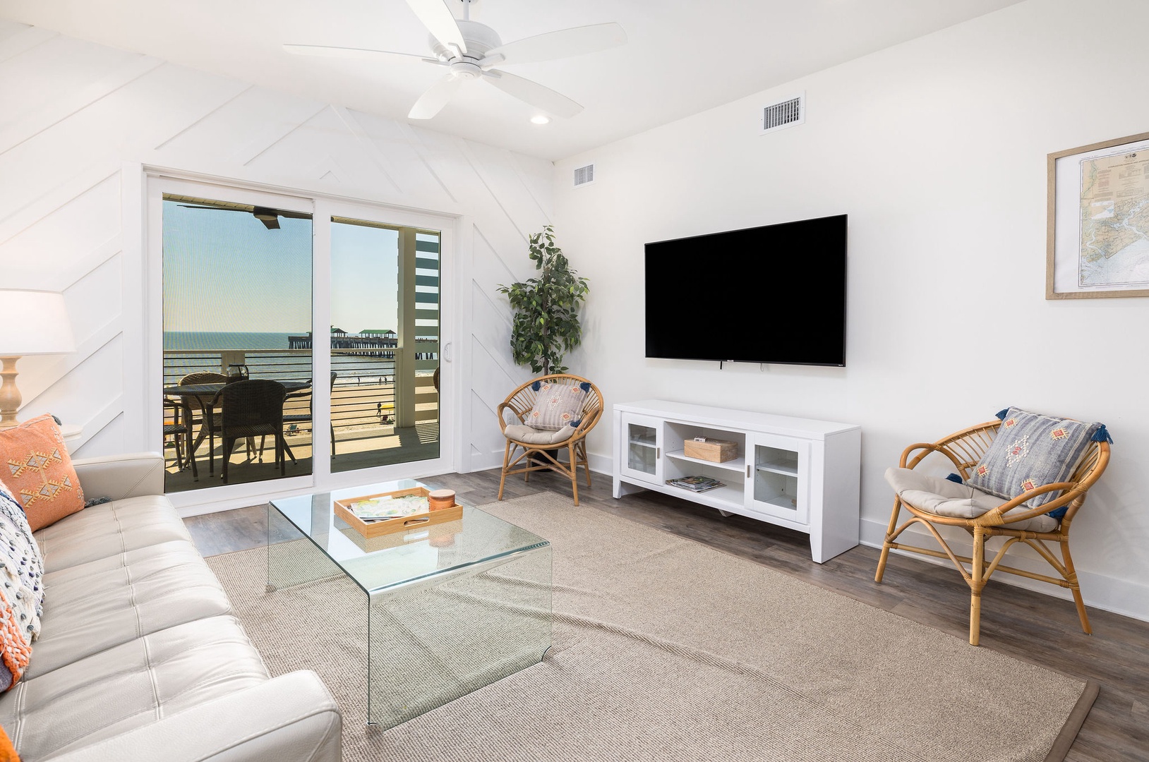 Welcome to Sapphire, a beautifully located 2-bedroom, 2-bathroom oceanfront condo on the second floor of the fully renovated Mermaid Cove building. This charming unit provides stunning ocean views from the deck, living room, dining area, kitchen, and one of the spacious bedrooms, offering a serene and comfortable escape. Just steps from Center Street, Sapphire puts you within easy reach of Folly Beach’s vibrant dining, shopping, and entertainment options, making it the perfect destination for a beachside getaway.