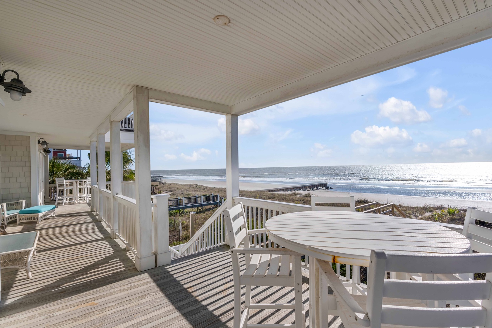 Welcome to Hakuna Matata, a stunning 5-bedroom, 3.5-bathroom oceanfront beach house with some of the best views on Folly Beach! Perfect for families or groups, this spacious home offers multiple living areas, a wet bar, and a ping pong table for some friendly competition. Located just 5 blocks from Center Street, Hakuna Matata provides easy access to Folly Beach’s shops and restaurants, while offering the perfect retreat for relaxation and fun.