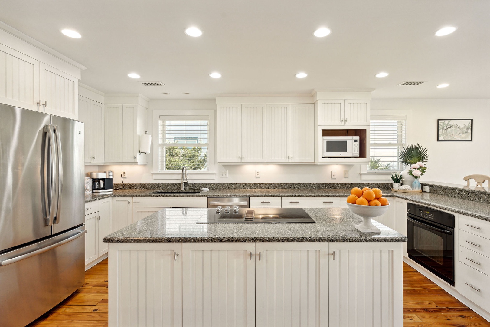 A spacious and fully equipped kitchen allows multiple cooks to prepare meals together while still enjoying ocean views. With counter space and modern appliances, it’s ideal for whipping up family feasts.