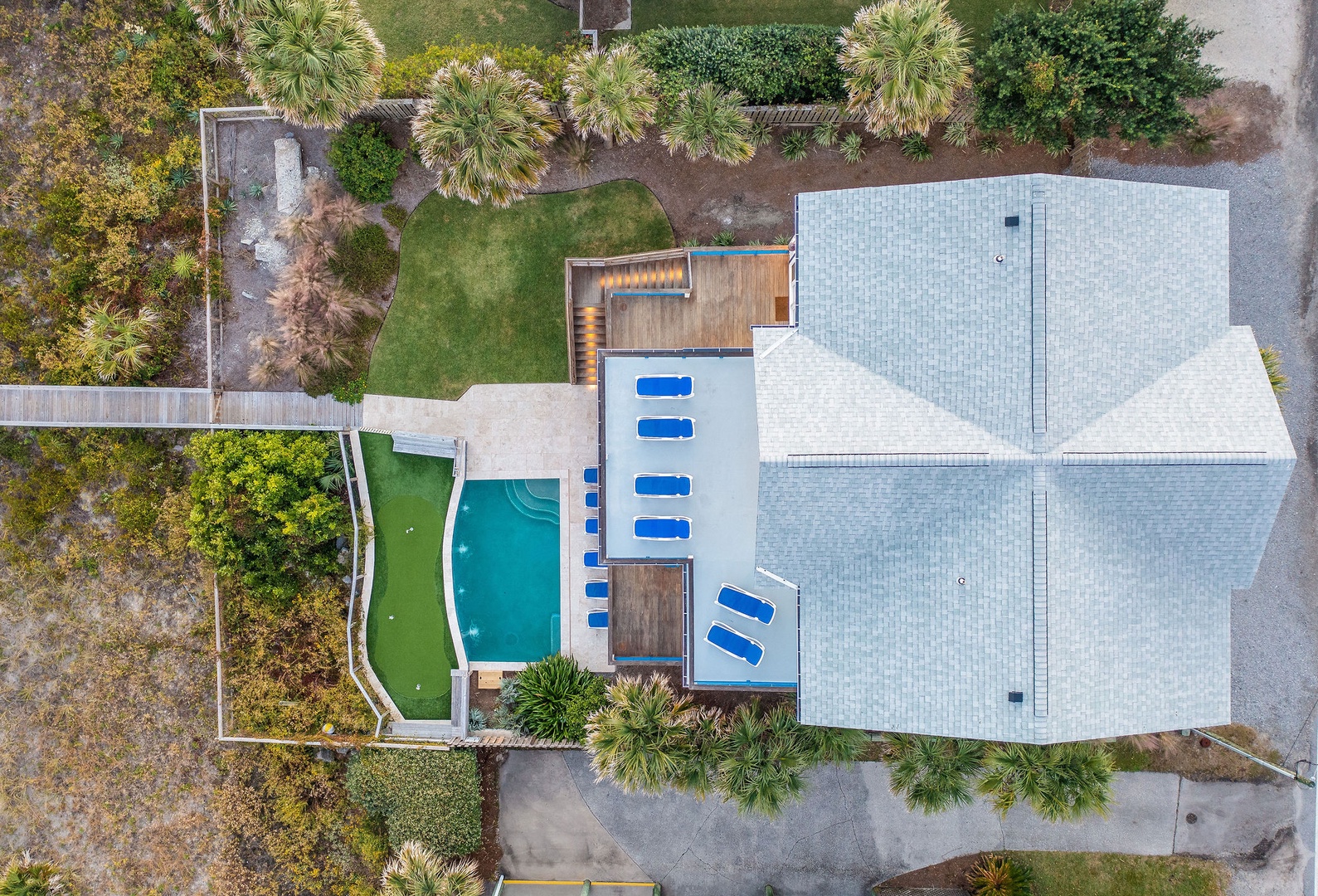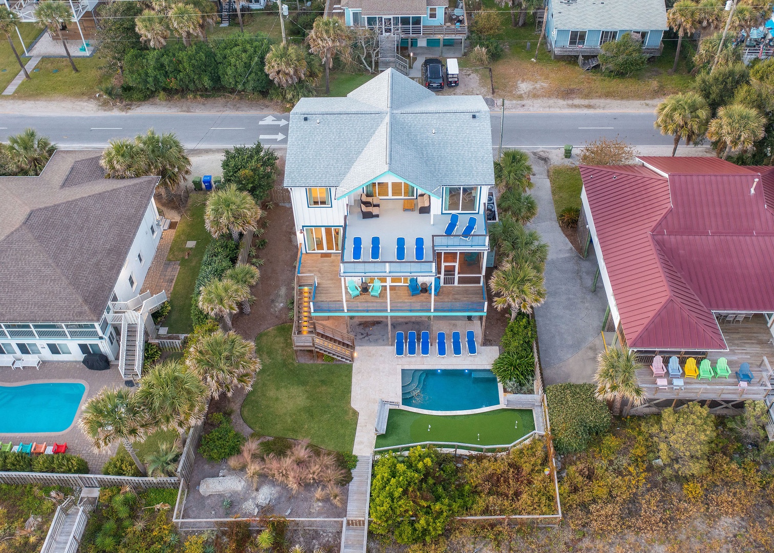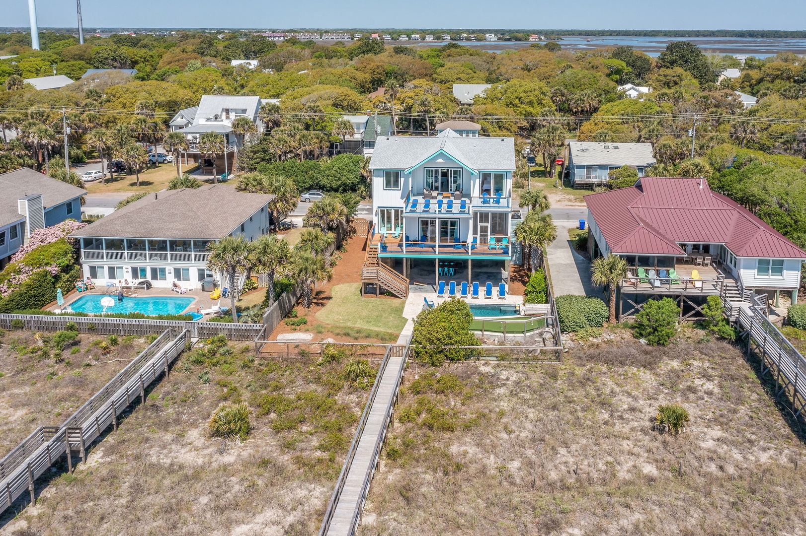 This aerial shot captures it all: oceanfront access, resort-style amenities, and total privacy.