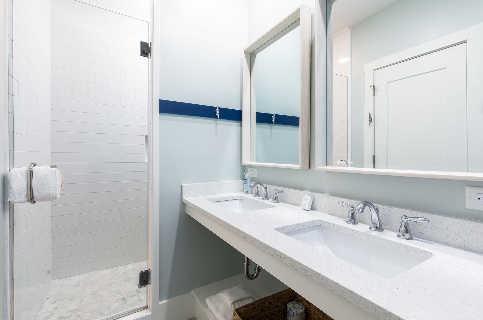 Each bedroom features a private en-suite bathroom with modern amenities, fresh towels, and complimentary toiletries for added comfort.