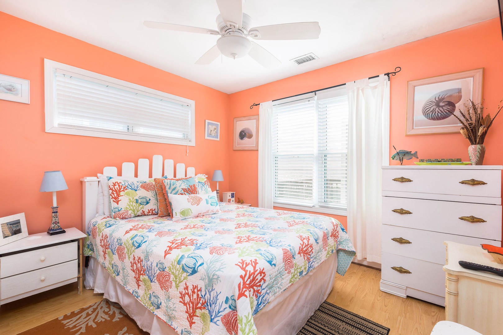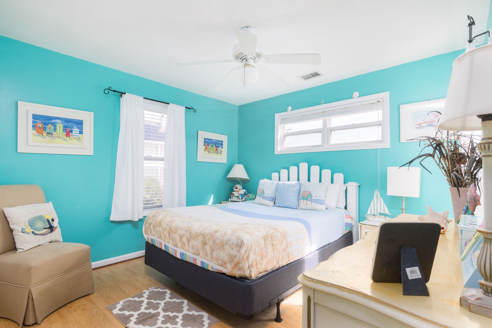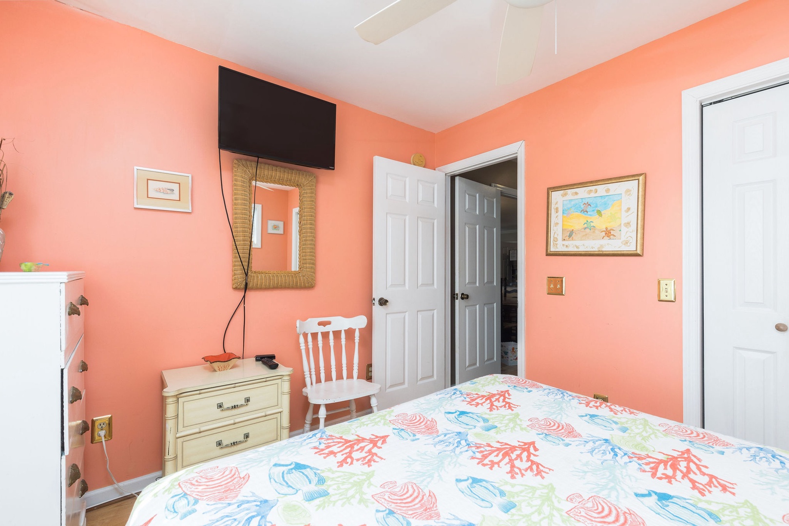 Bedroom 4: Queen bed with access to a shared hallway bathroom.