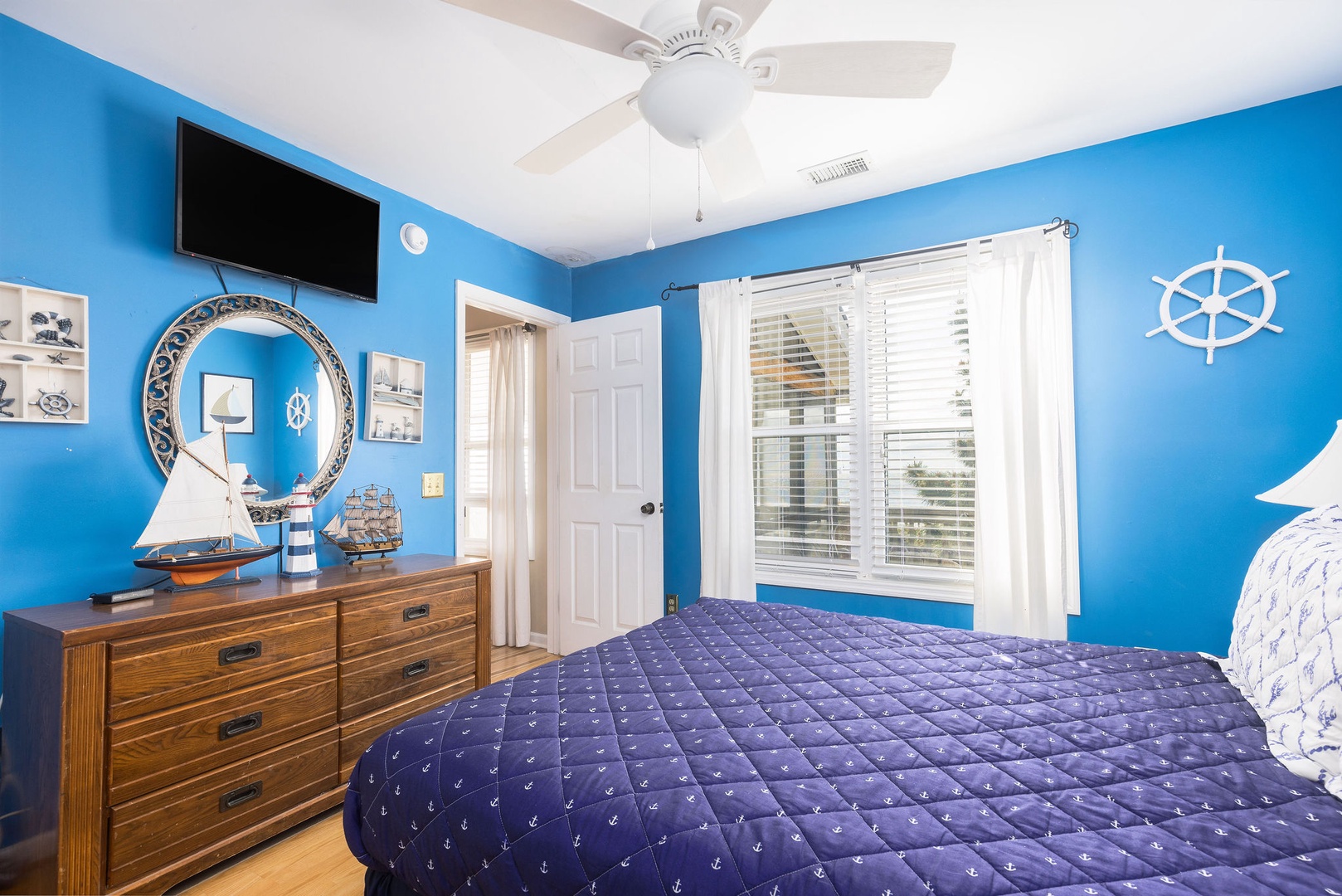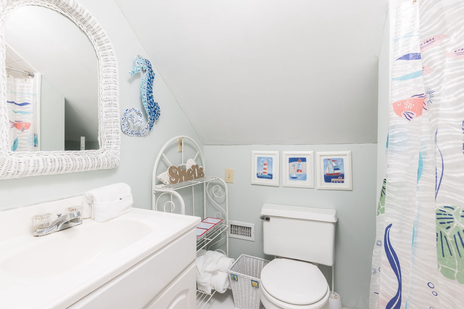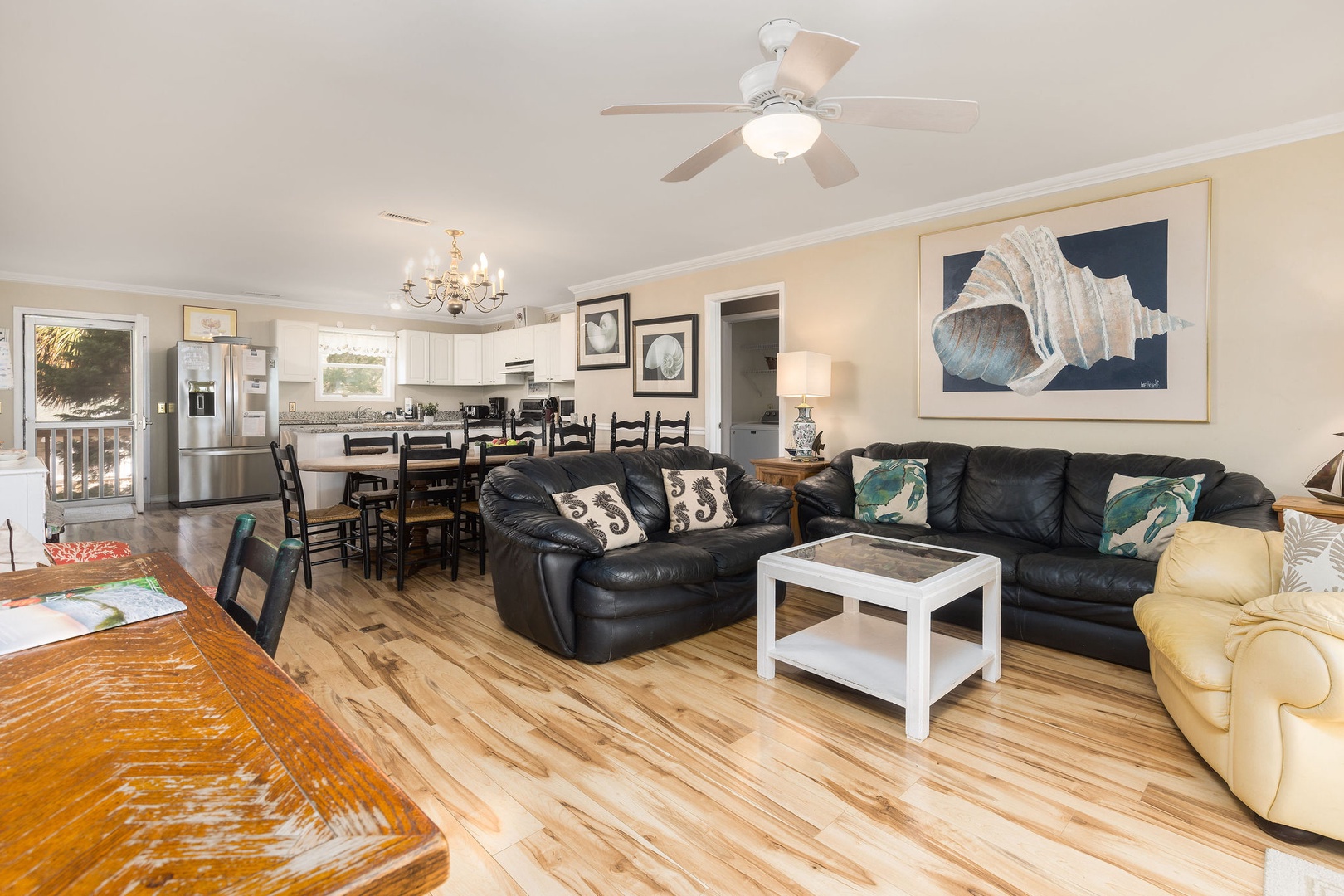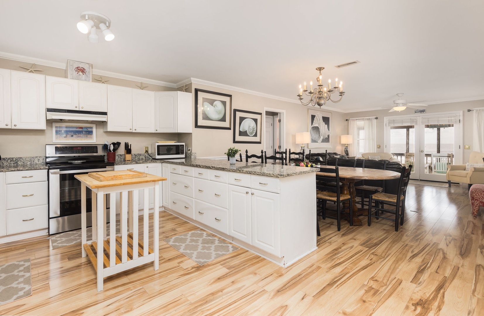 Living Area: The main level features an inviting dining area with a spacious table that has hosted countless meals, game nights, and reunions over the years. Adjacent to the dining area is a cozy living room, where you can enjoy both ocean views and entertainment on the TV—ideal for those rare rainy days.