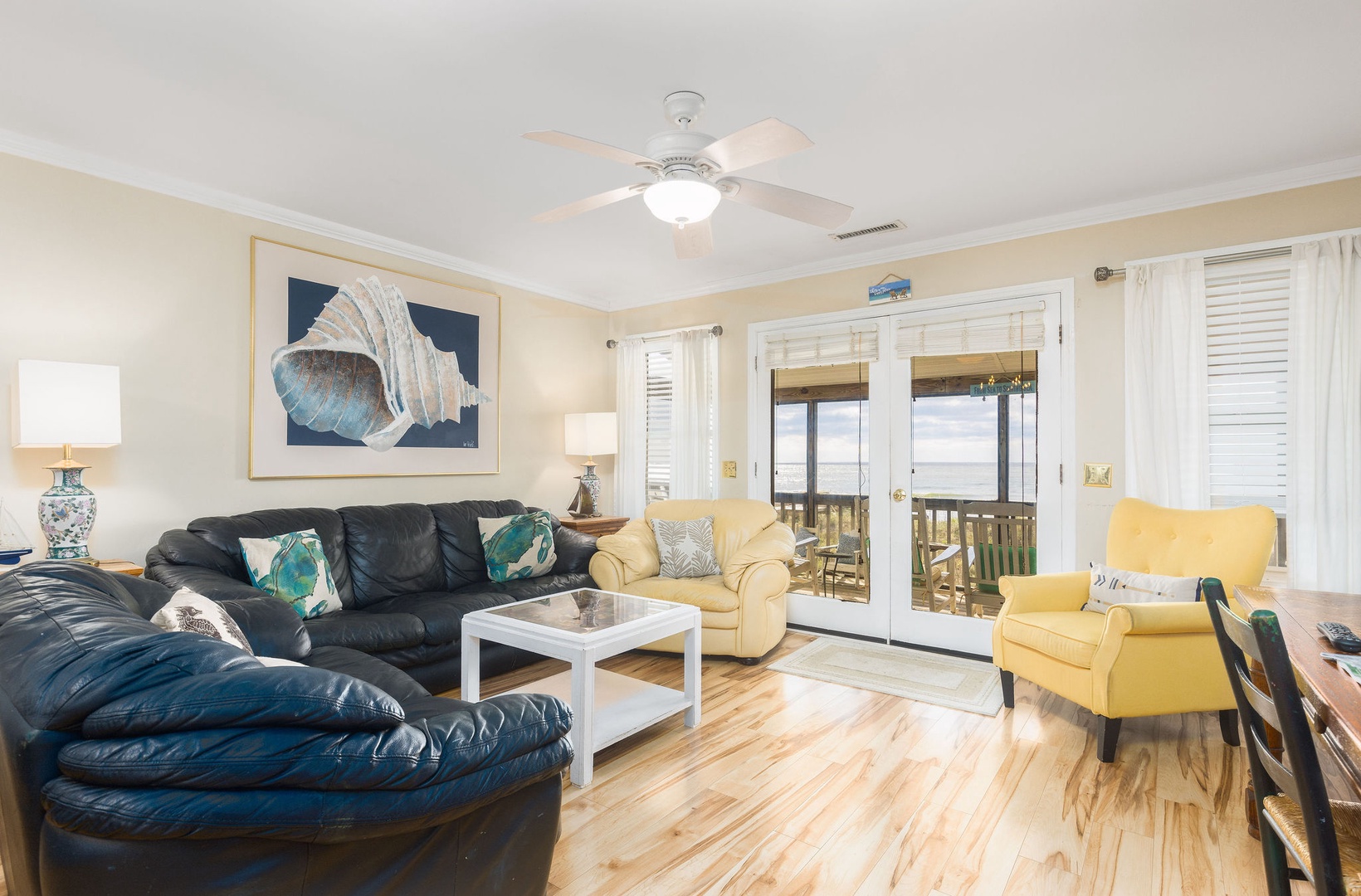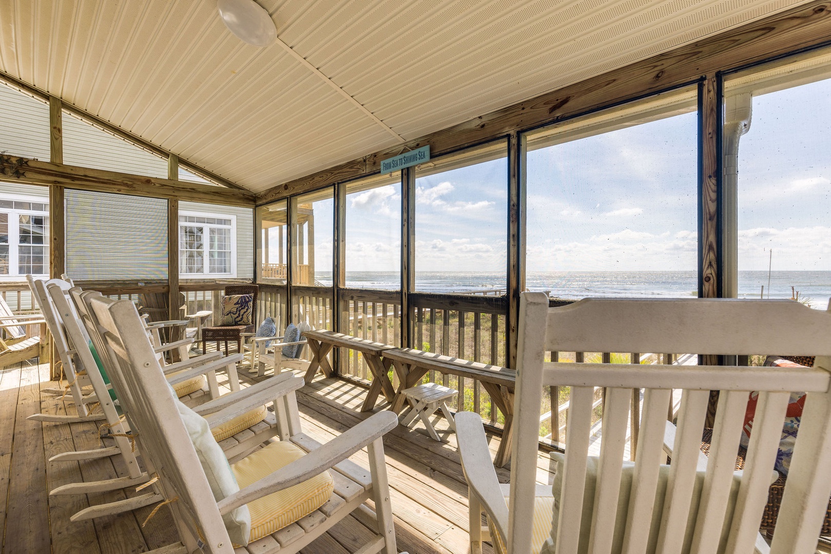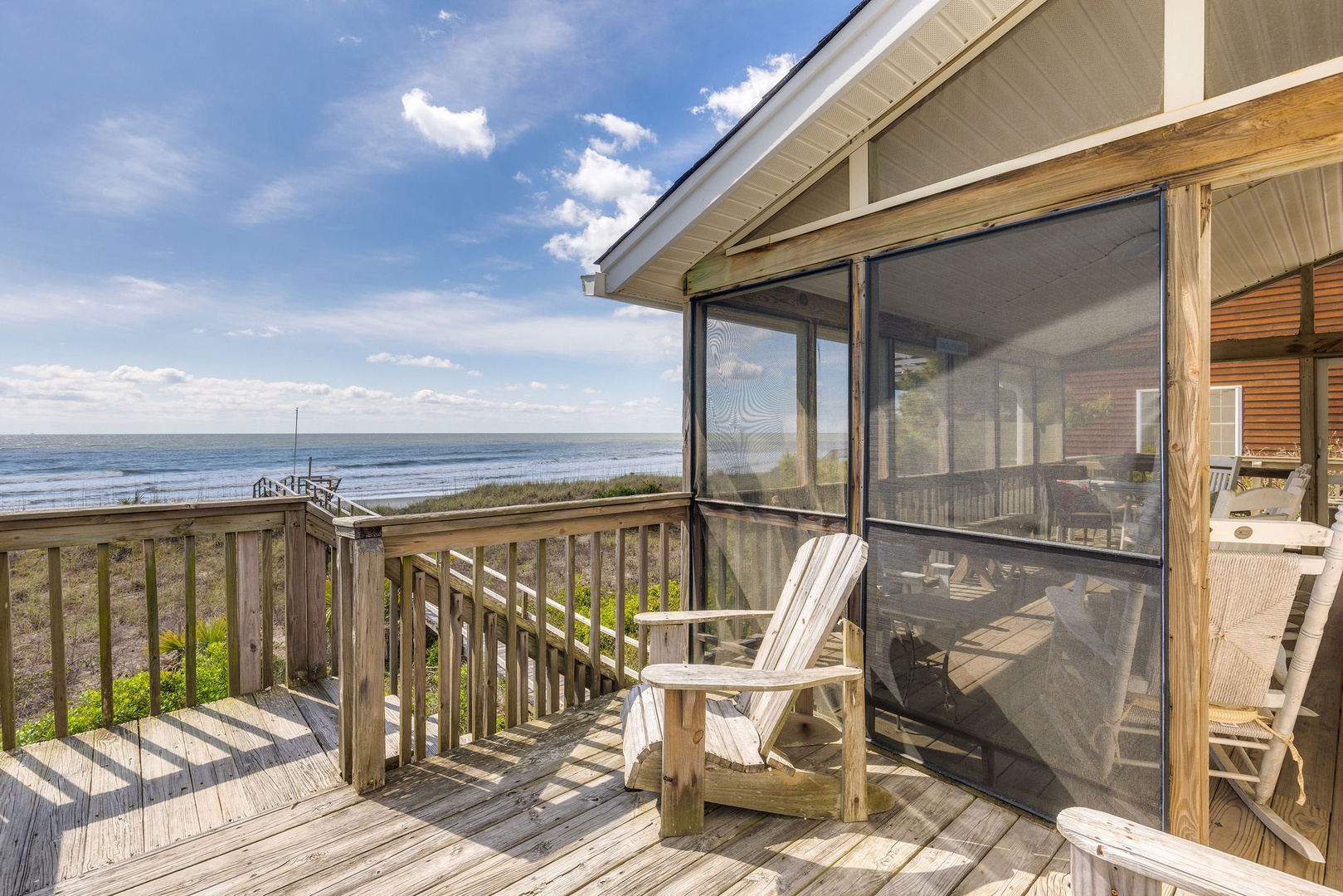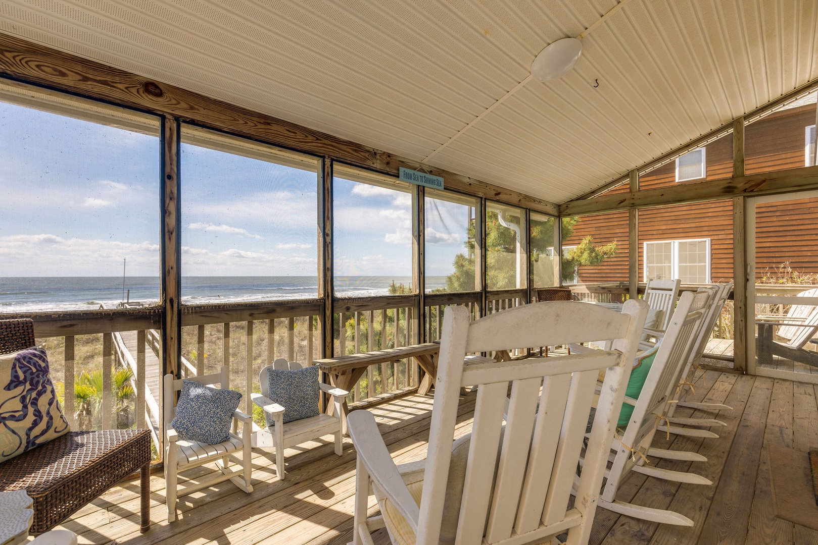 Screened-In Porch: A cozy space to enjoy meals or relax while taking in the ocean breeze and listening to the waves.