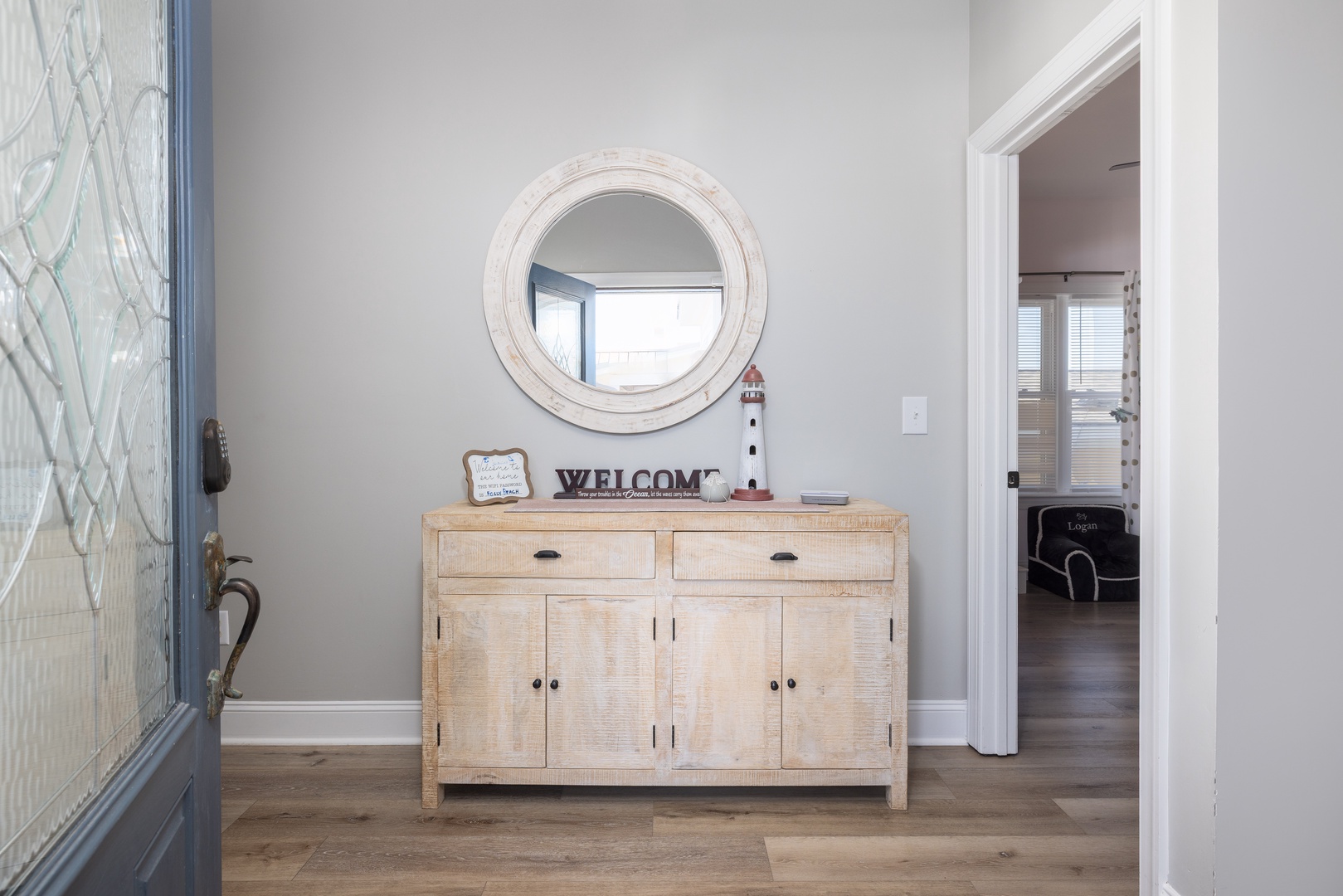 Step into your welcoming entryway where coastal charm meets comfort, complete with thoughtful touches that make you feel instantly at home.