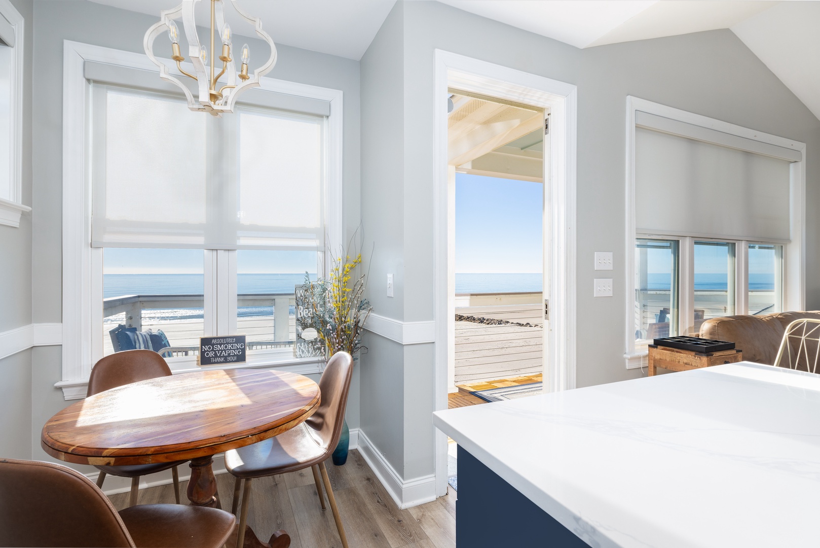 Your oceanfront dining nook offers stunning sea views while you enjoy meals, with doors opening to your private beachside deck.