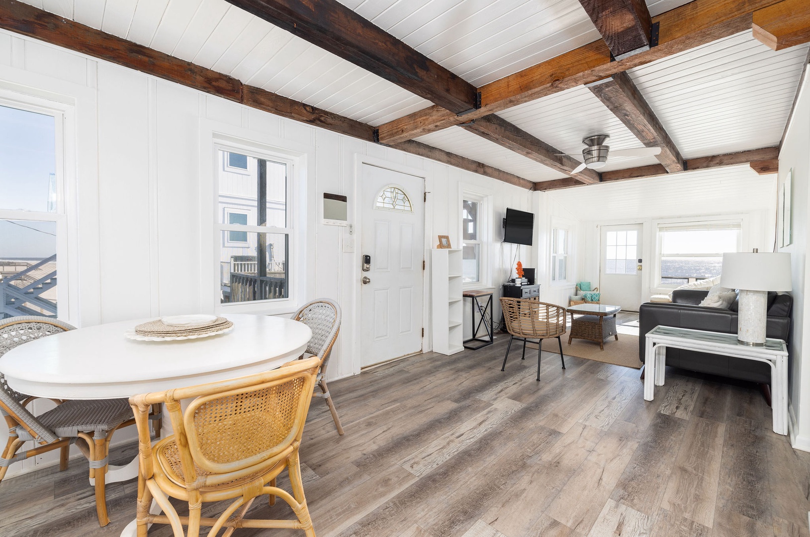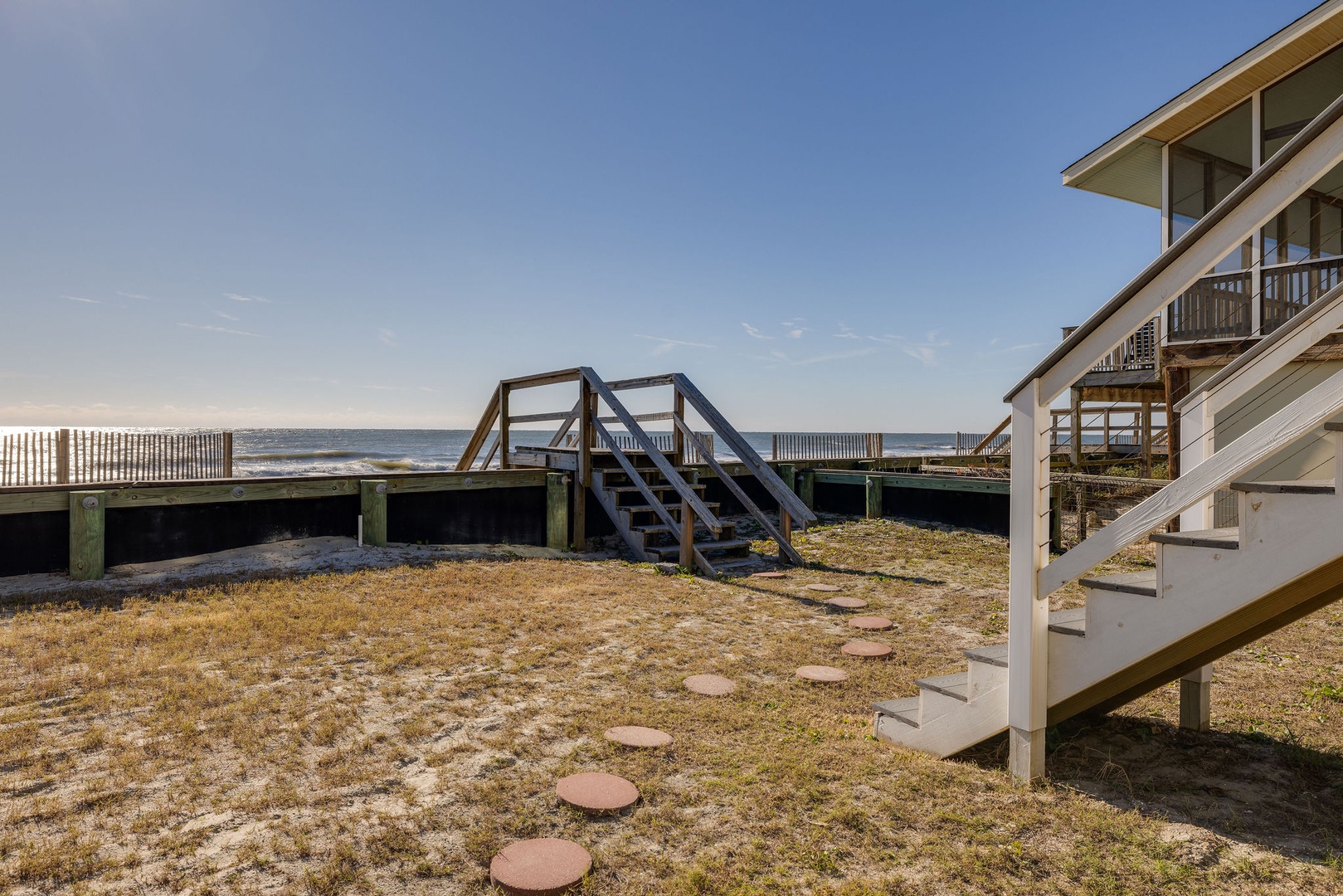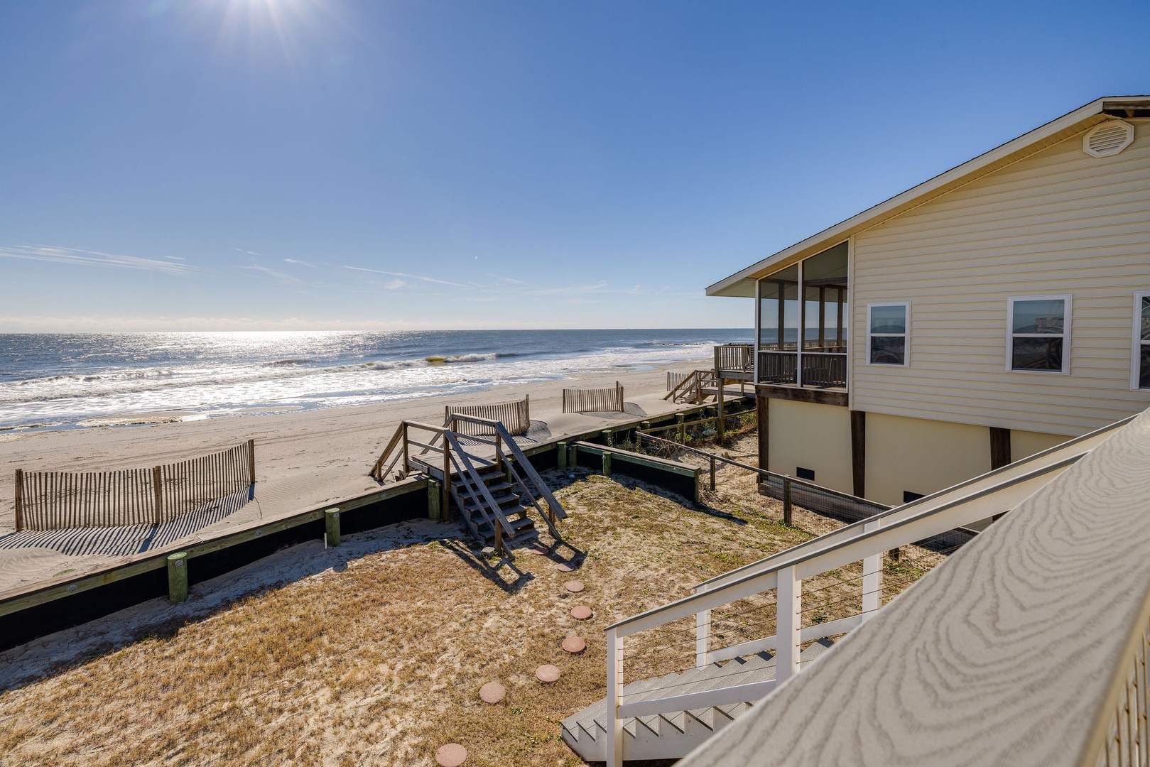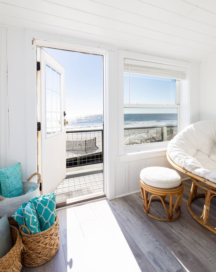 Welcome to The Cottage @ Dolphin's Watch, a renovated 2-bedroom, 1-bathroom oceanfront retreat located at the peaceful end of East Arctic Avenue. This cozy first-floor duplex offers a serene setting with an oceanfront deck that spans the length of the home, providing the perfect spot to enjoy the sights and sounds of the ocean. Ideal for couples, small families, or friends, The Cottage delivers a comfortable coastal experience just steps from the beach.