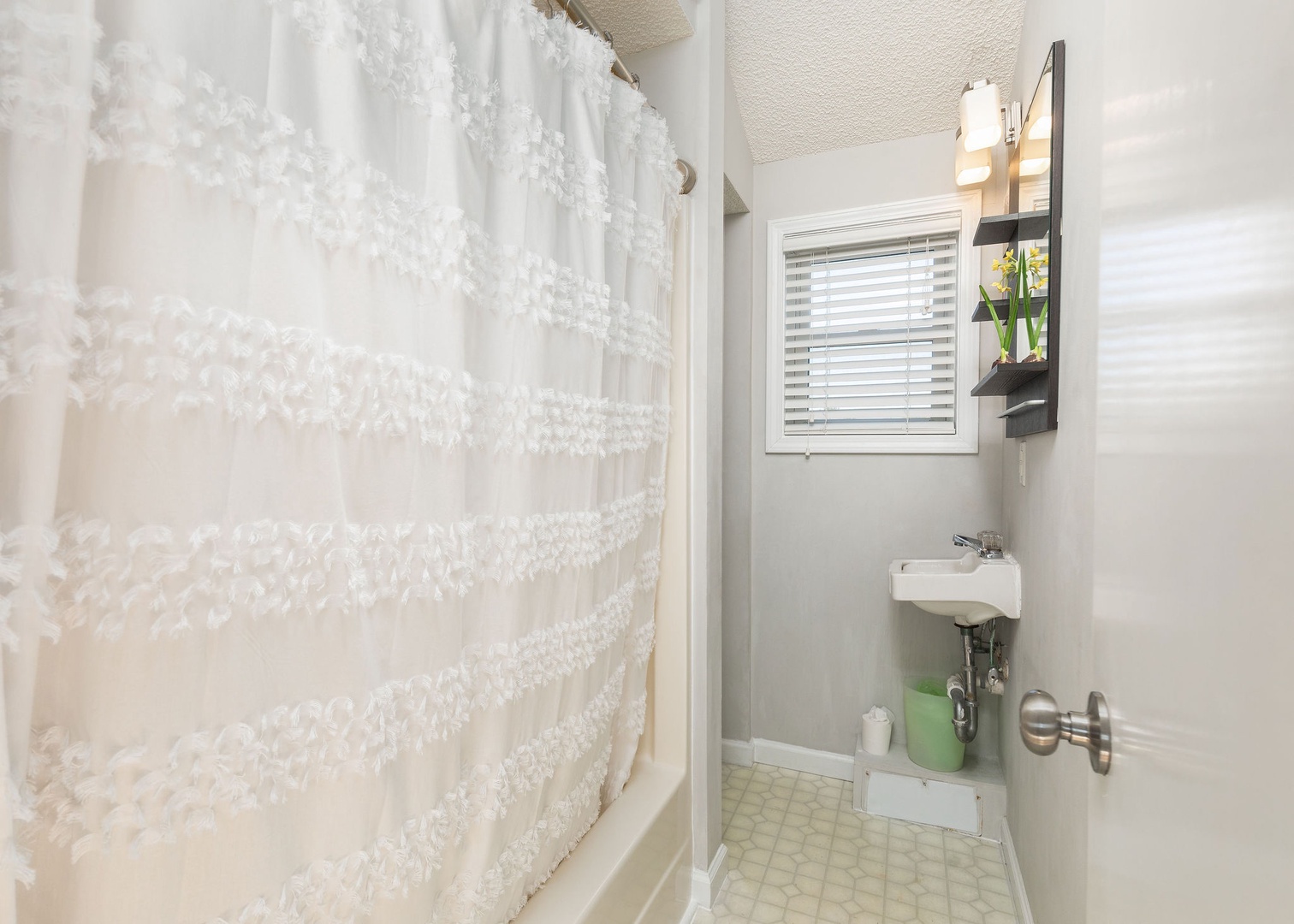 The bathroom features modern amenities, ensuring a comfortable stay.
