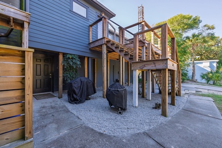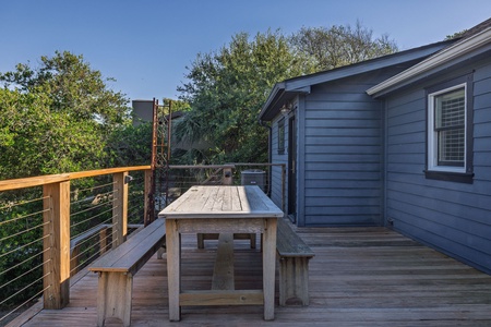 Back deck: Spacious sundeck with plenty of seating, a picnic table, and a gas grill, ideal for outdoor dining and relaxation.