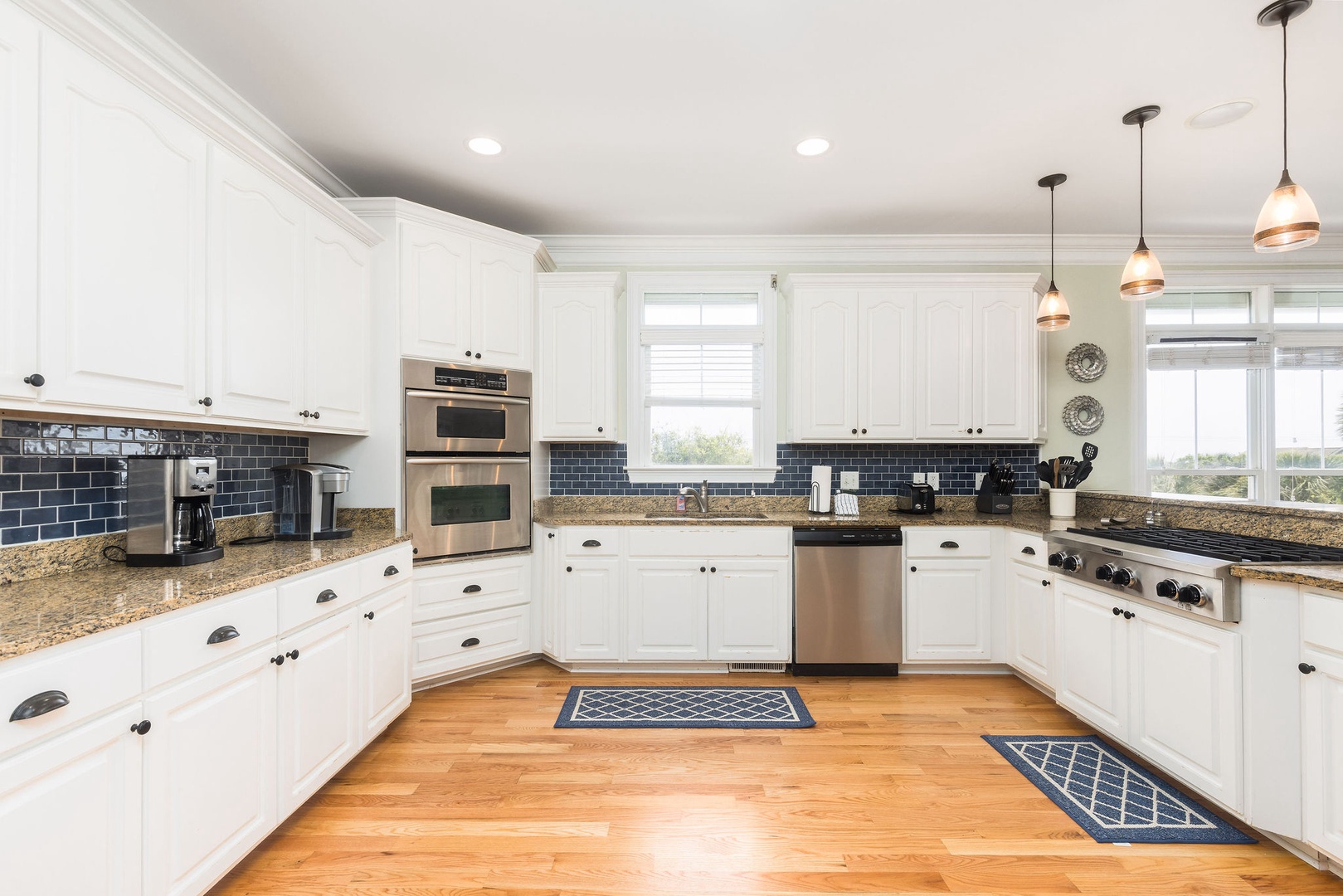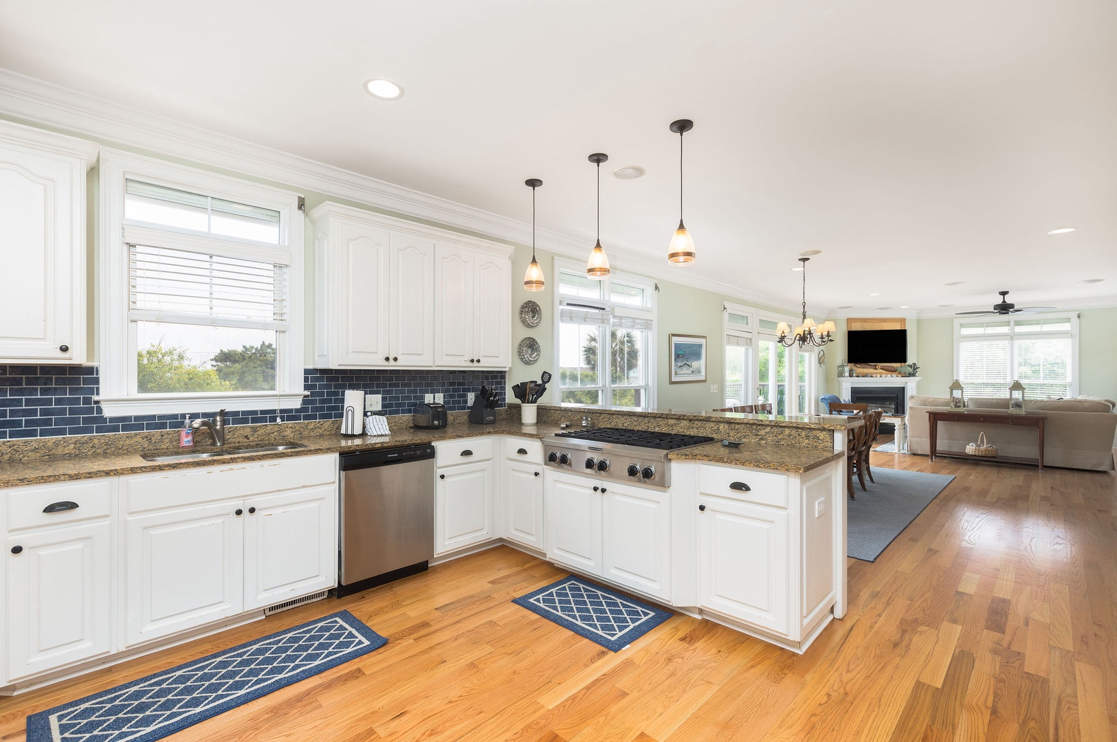 Enjoy preparing meals in this well-appointed kitchen with expansive counters and ocean breezes just steps away.