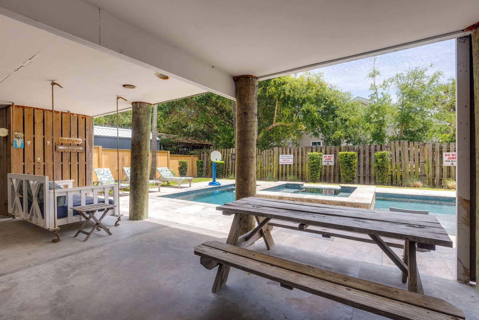 Covered Poolside Dining Area: Ideal for lunch, evening BBQs, or enjoying the coastal breeze.