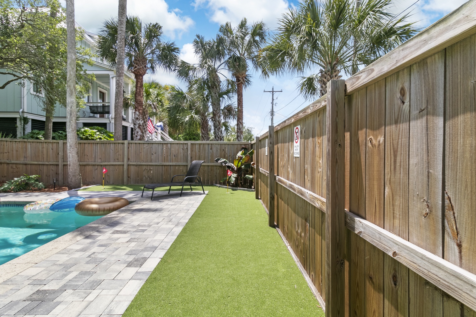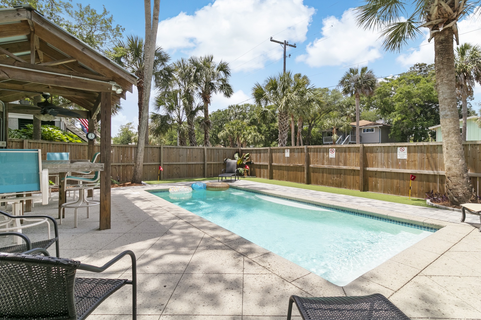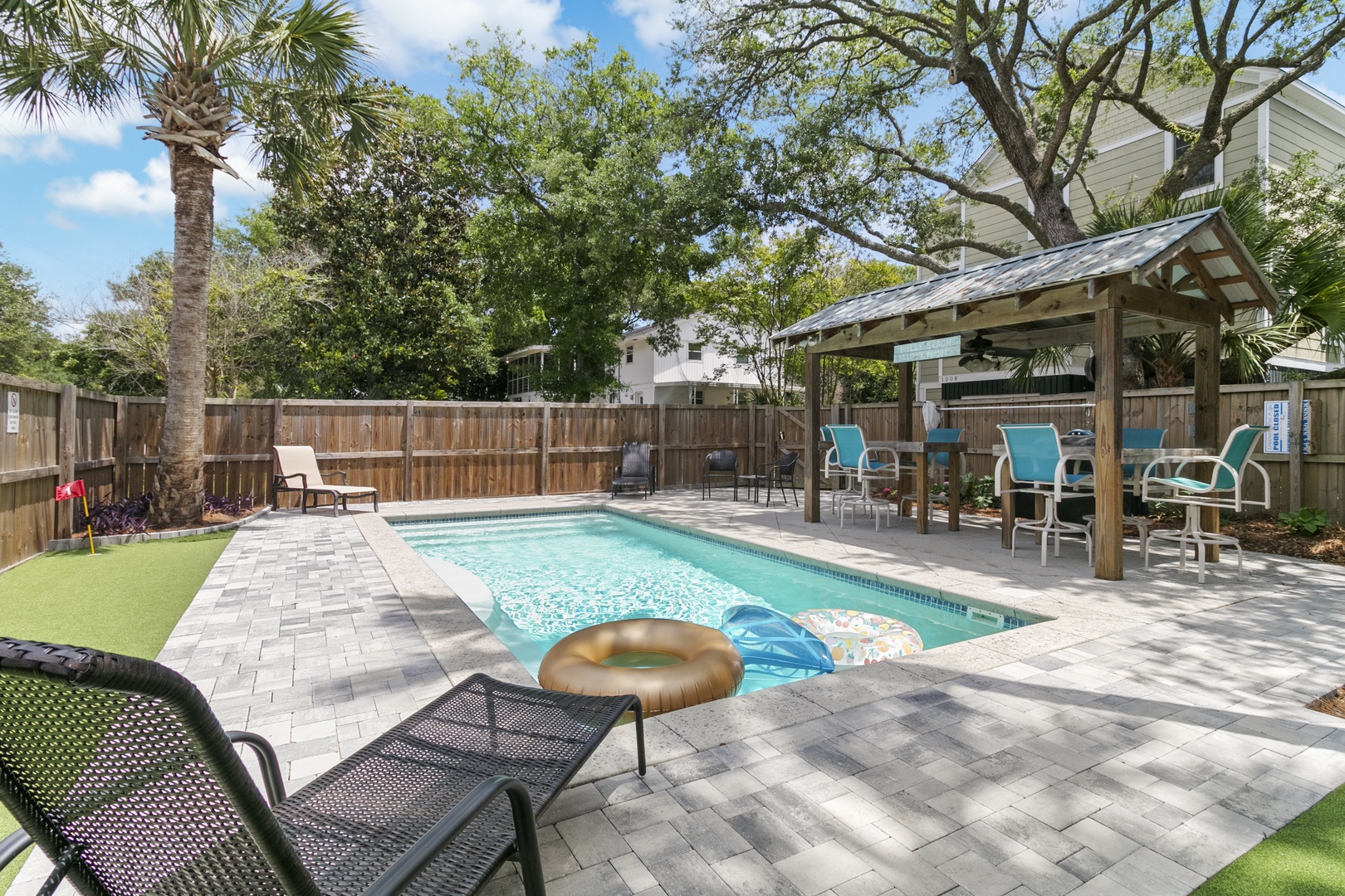 Welcome to The Okeanós, a luxurious 4-bedroom, 3.5-bathroom retreat on Folly Beach, offering the perfect blend of elegance, comfort, and outdoor fun. Named after the Greek word for a river circling the earth, The Okeanós provides its own private pool oasis while being just a short stroll from the ocean. Recently updated with a fresh new look, this well-appointed vacation home features mounted TVs in every room, new living room furniture, and a revamped outdoor area, including a sparkling pool and a putting green. Whether you're here to relax or entertain, The Okeanós has everything you need for a memorable beach getaway.