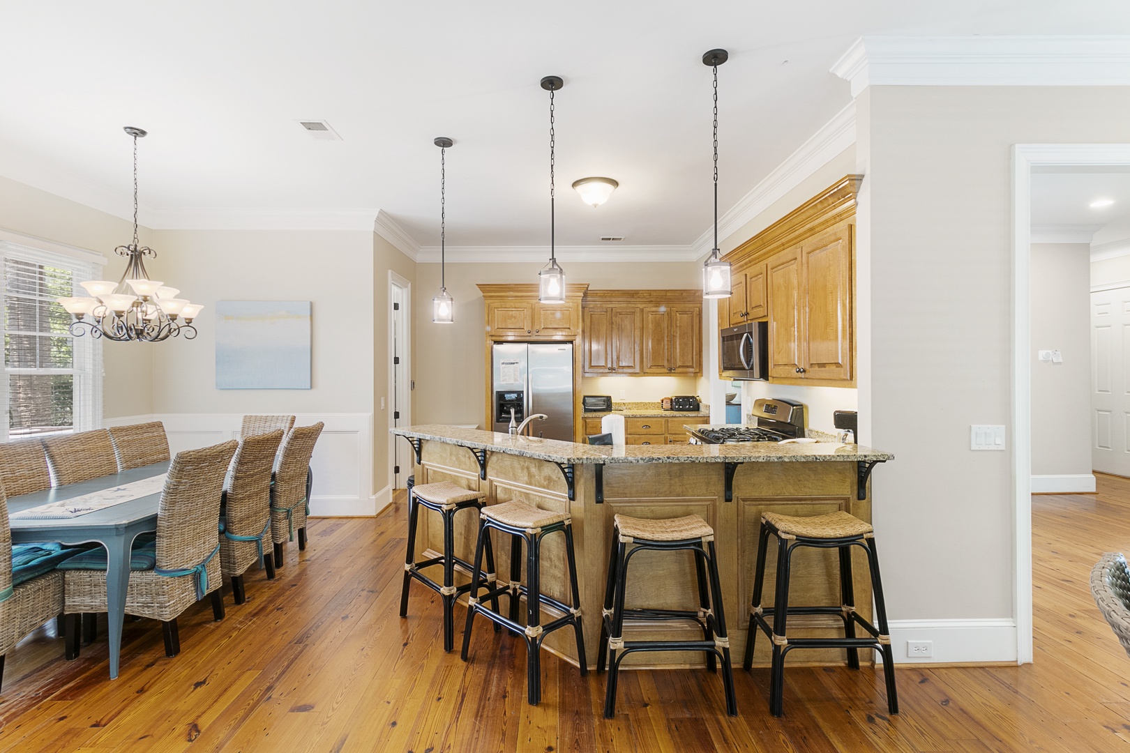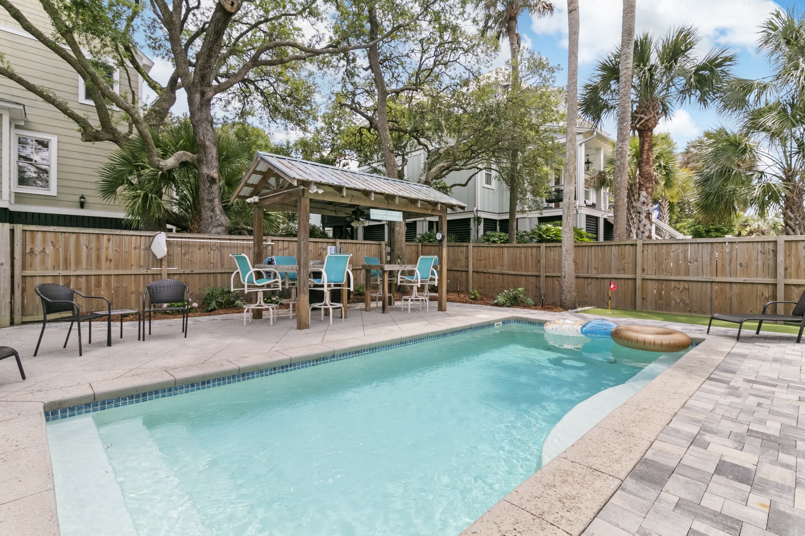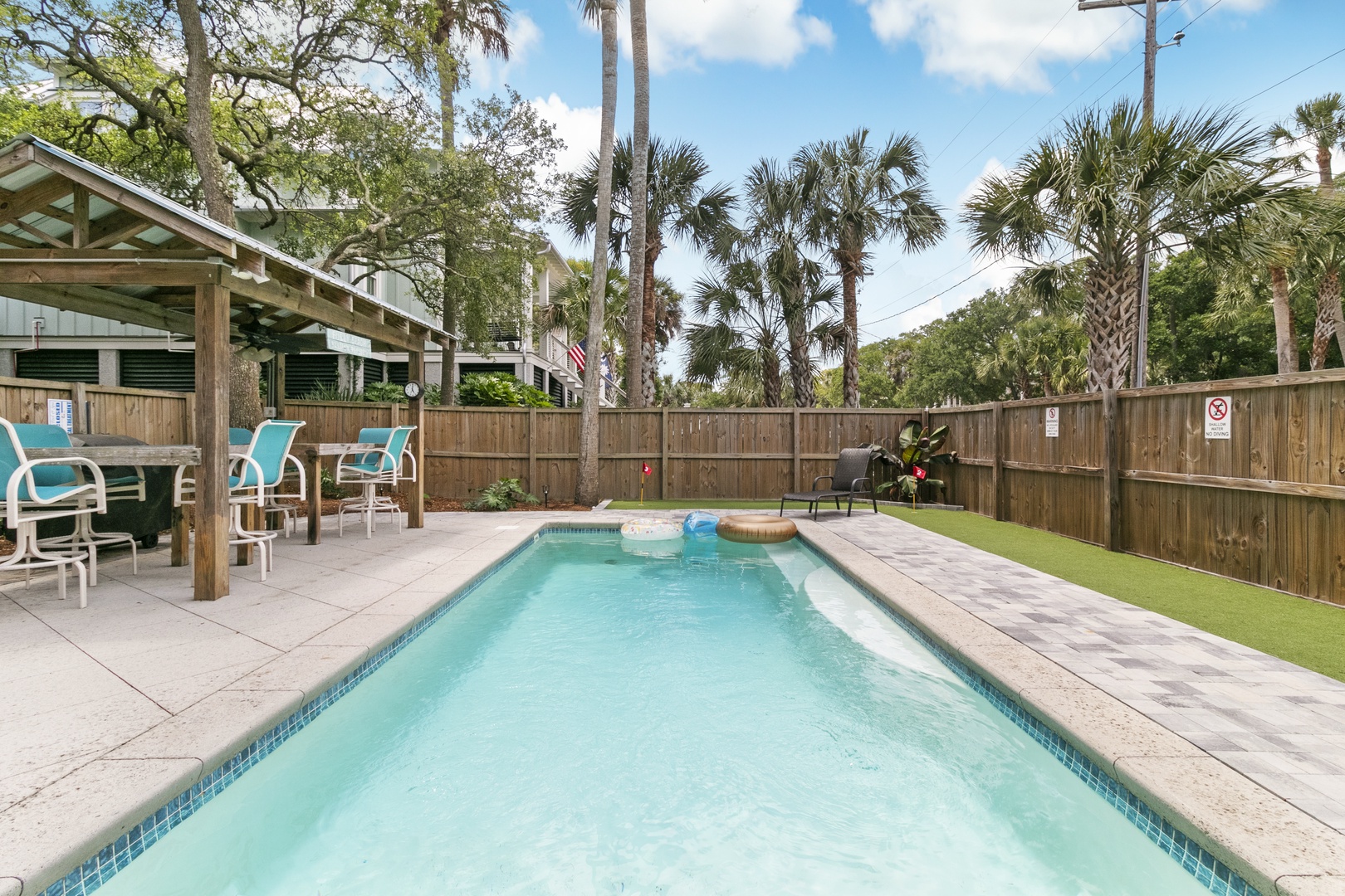 Welcome to The Okeanós, a luxurious 4-bedroom, 3.5-bathroom retreat on Folly Beach, offering the perfect blend of elegance, comfort, and outdoor fun. Named after the Greek word for a river circling the earth, The Okeanós provides its own private pool oasis while being just a short stroll from the ocean. Recently updated with a fresh new look, this well-appointed vacation home features mounted TVs in every room, new living room furniture, and a revamped outdoor area, including a sparkling pool and a putting green. Whether you're here to relax or entertain, The Okeanós has everything you need for a memorable beach getaway.