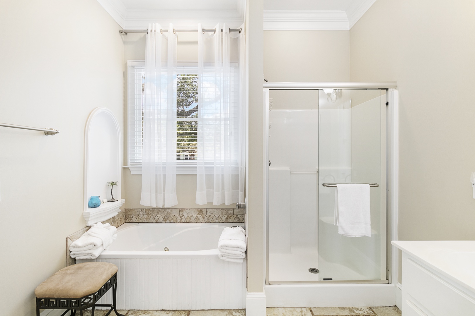 All bathrooms are updated with modern amenities, ensuring a comfortable stay for all guests.