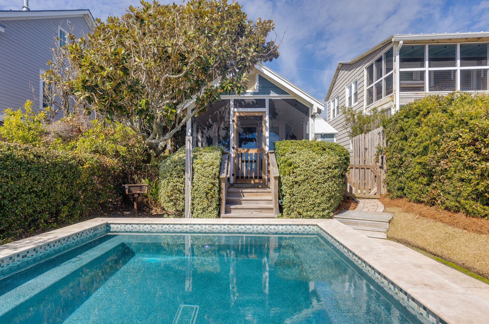 A charming 1-bedroom, 1-bathroom cottage retreat with cottage-chic decor, a screened-in porch, and private access to the heated pool. Ideal for couples or small families, it’s the perfect mix of coziness and convenience.