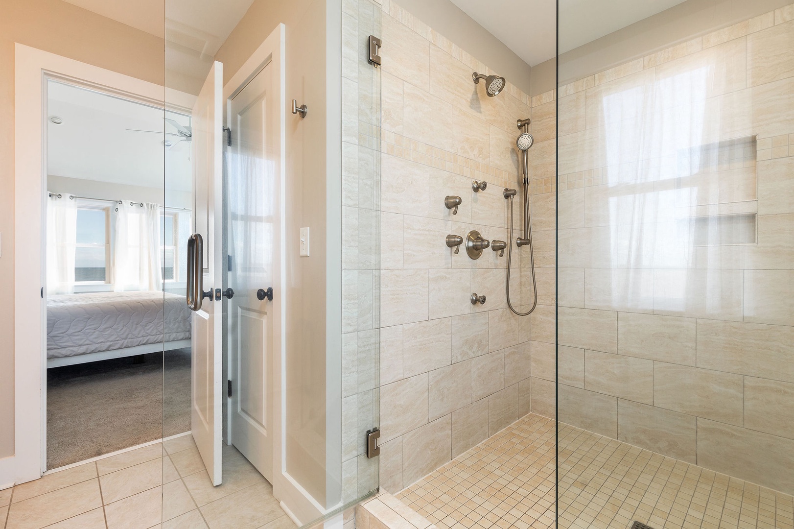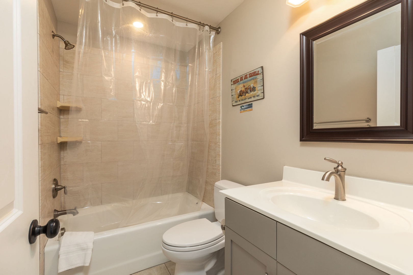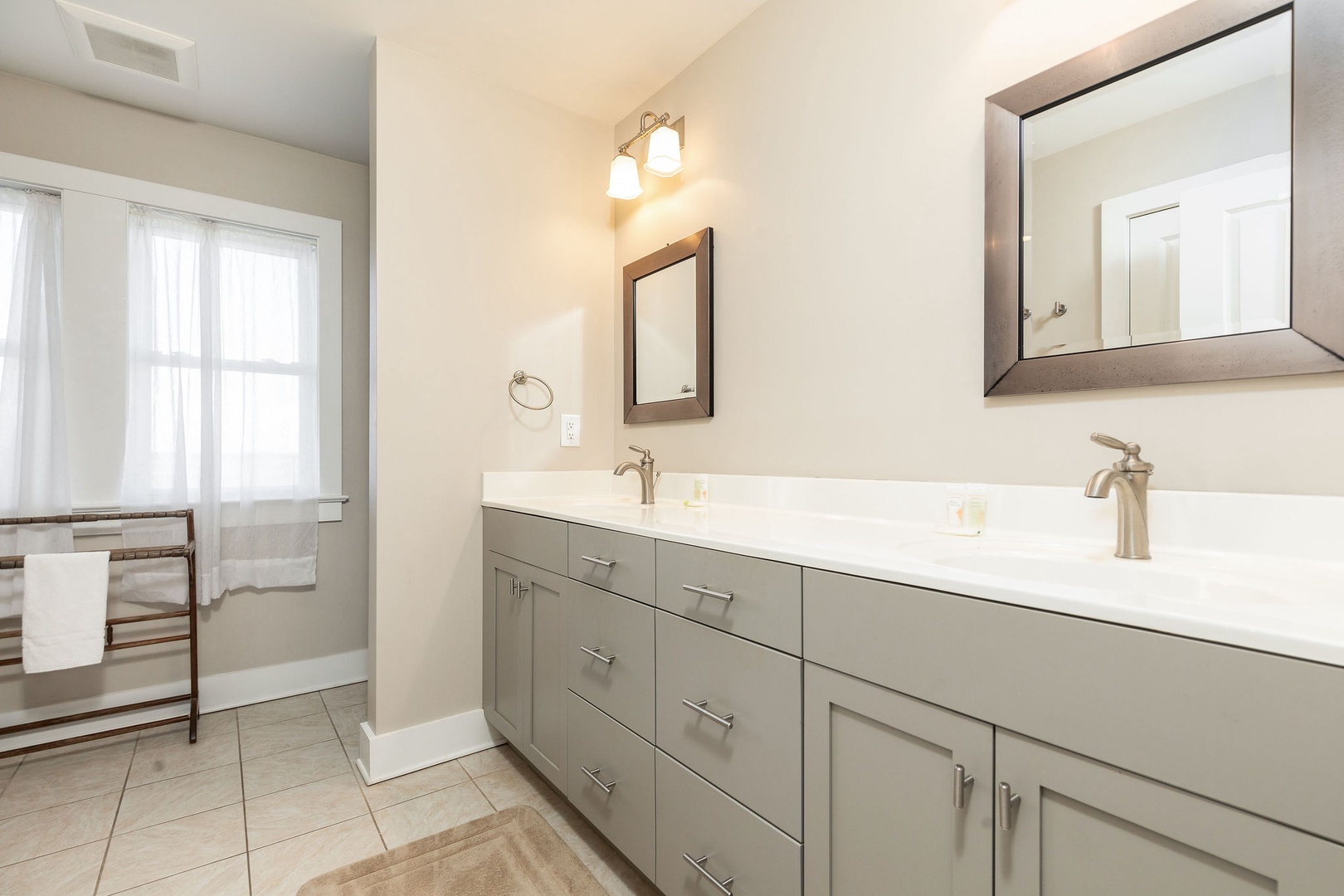 Two full bathrooms with modern fixtures and a fresh, clean design provide convenience and comfort for all guests.