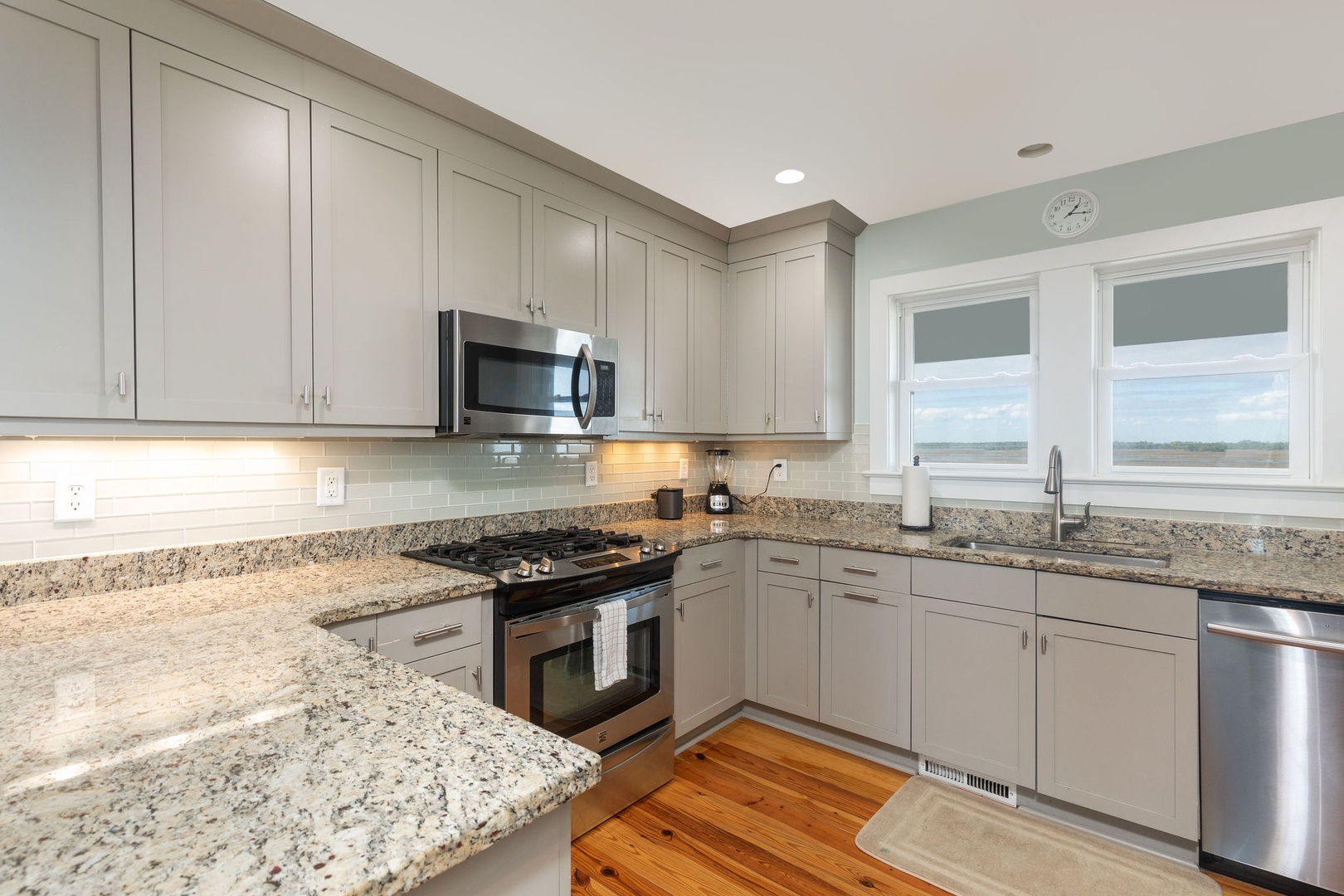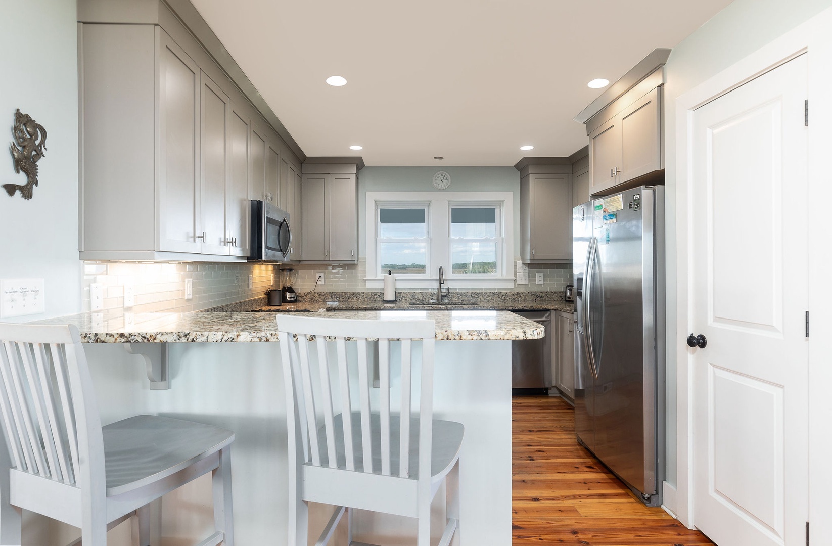 The fully equipped kitchen includes modern appliances, ample counter space, and everything needed to prepare delicious meals to enjoy on the deck or front porch with stunning views.