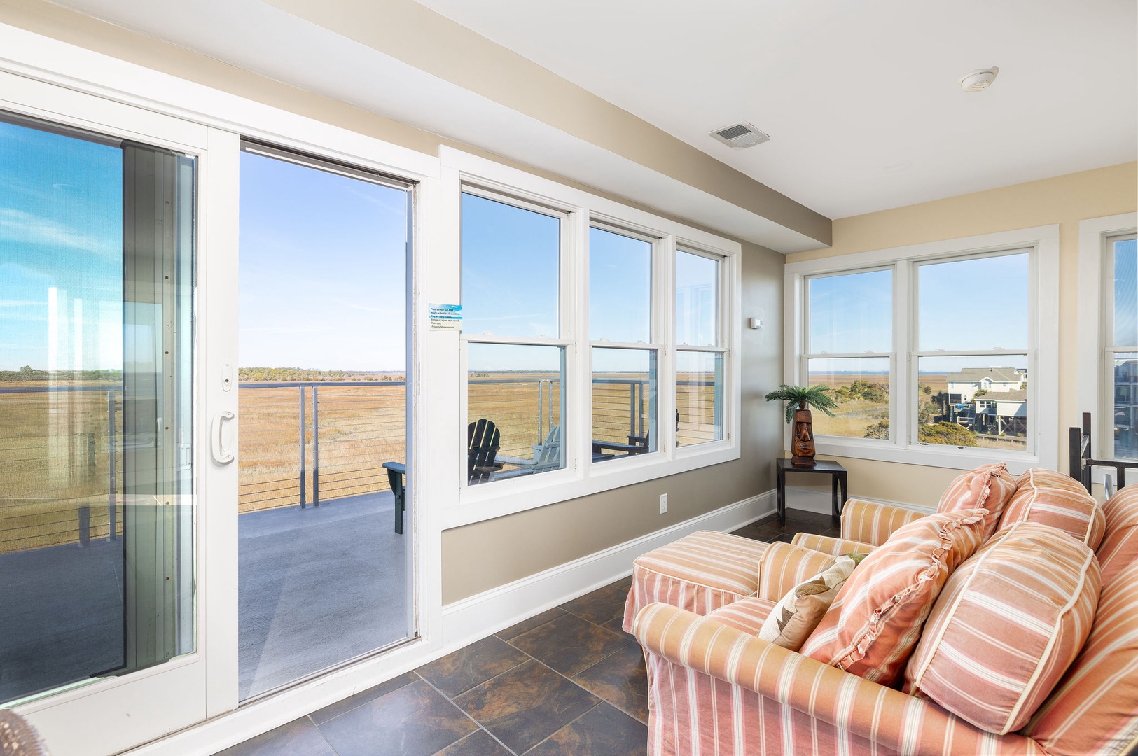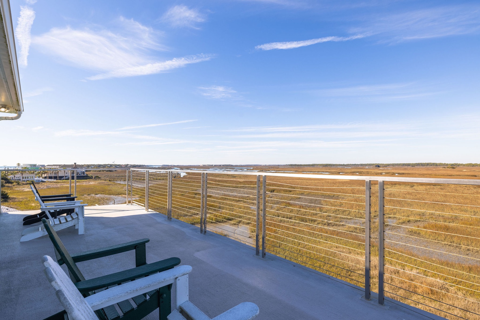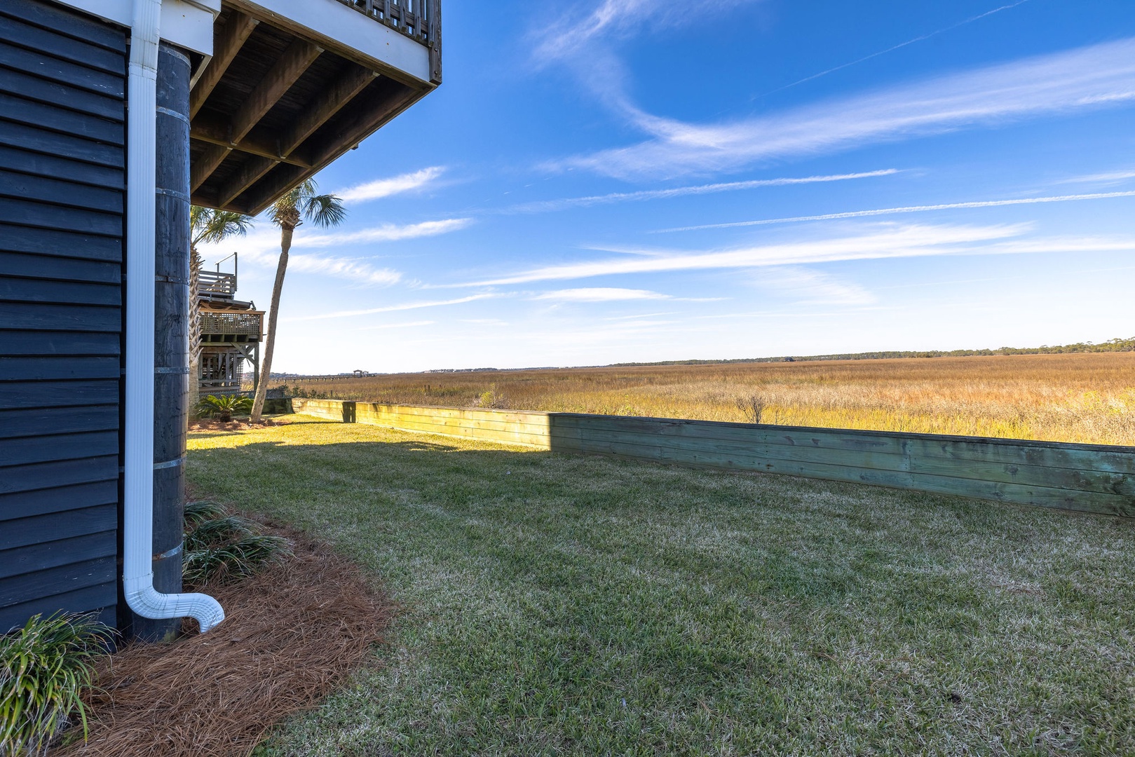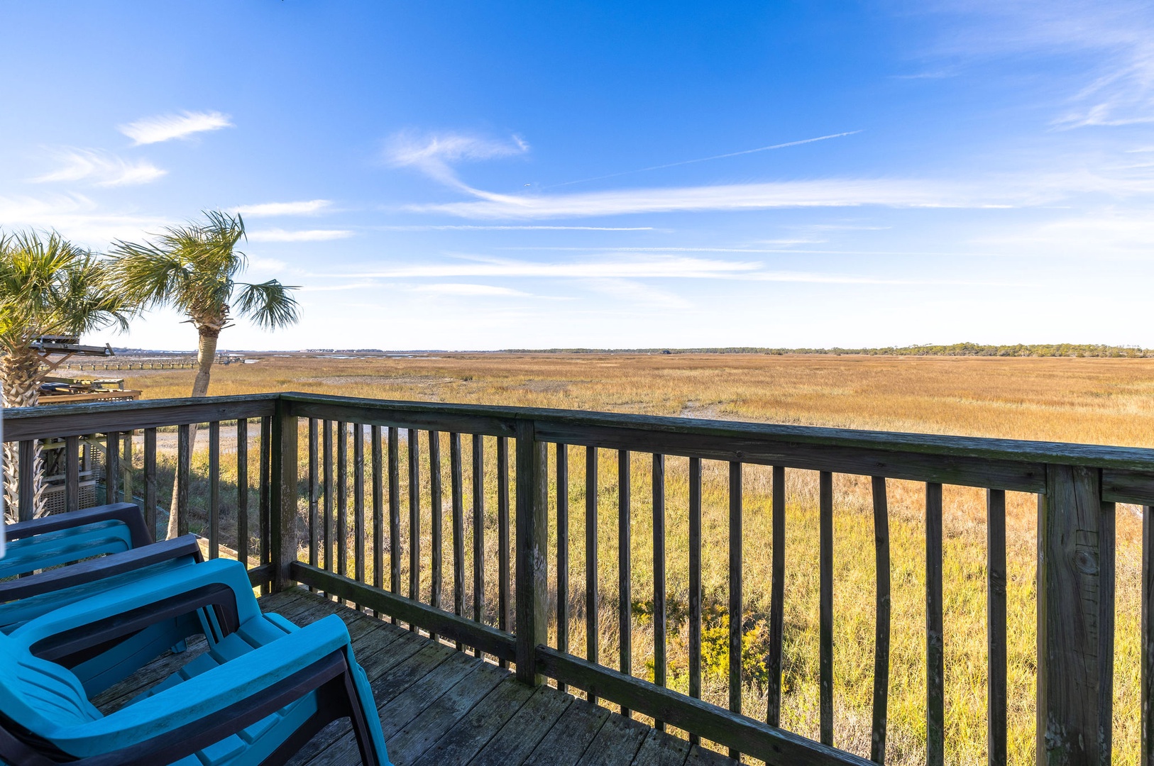 Marsh-Facing Deck: Perfect for wildlife viewing and soaking in the tranquil marsh views.