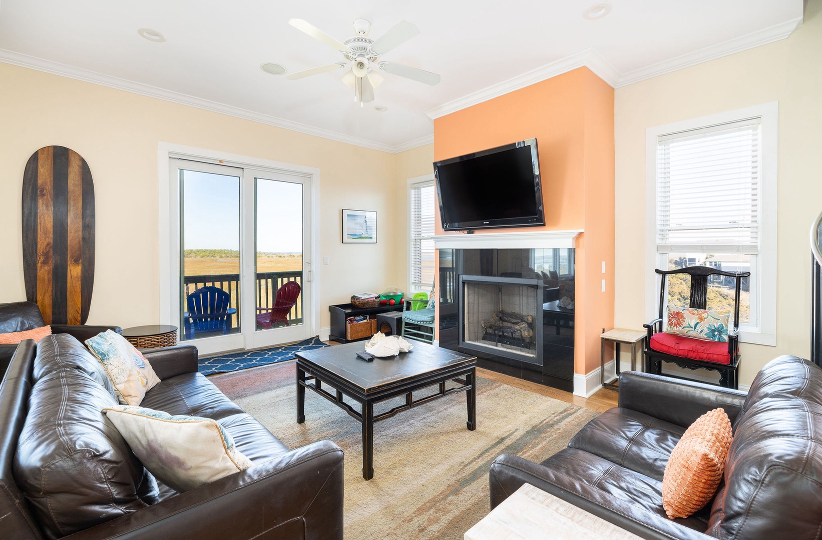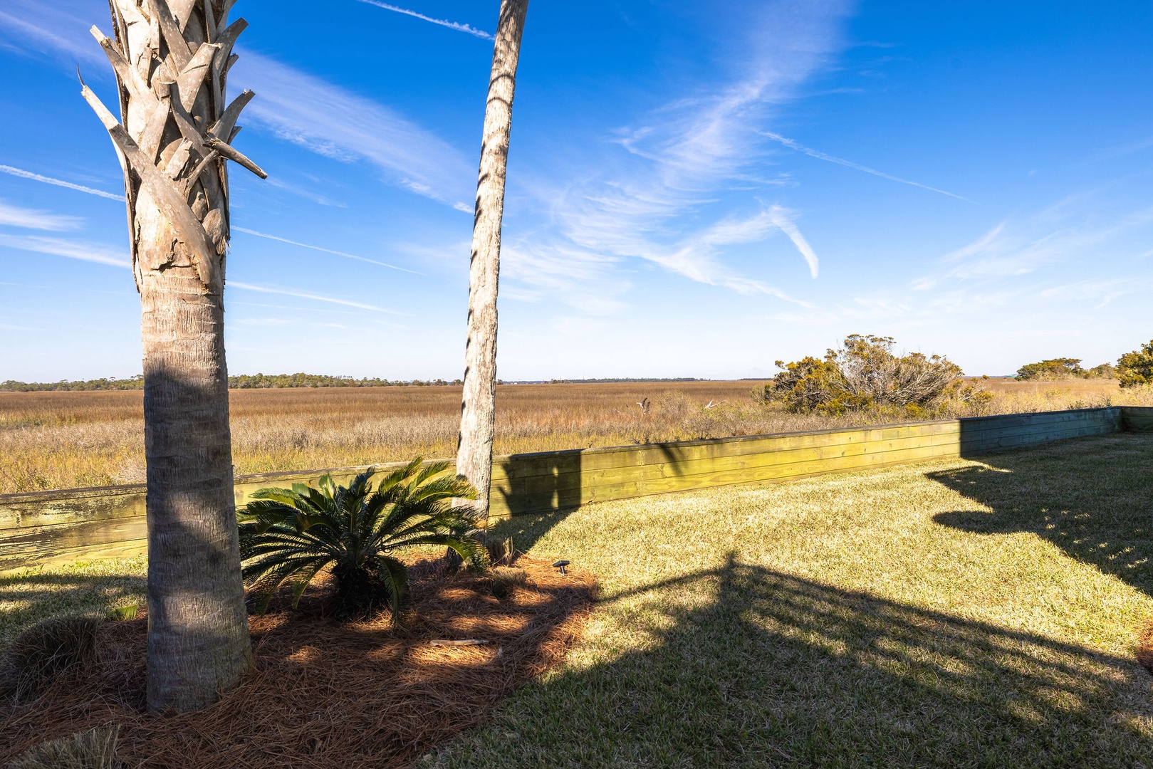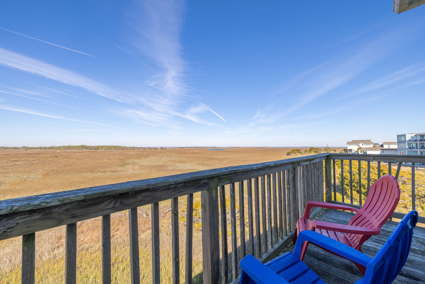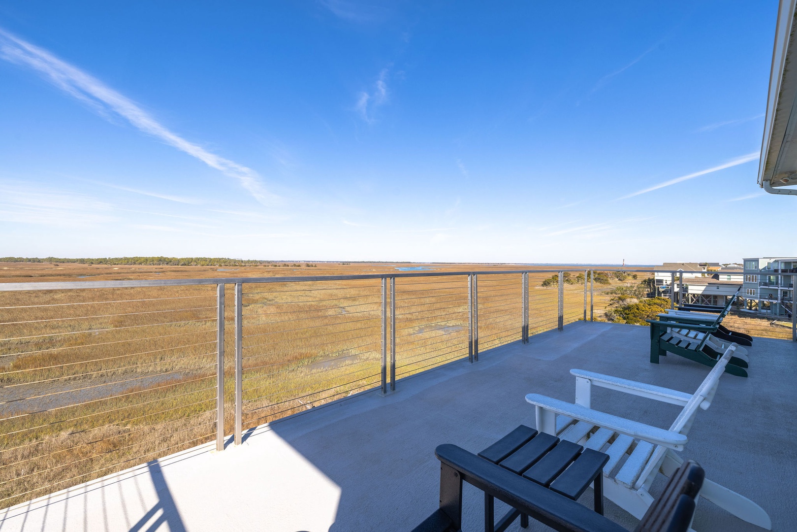 Marsh-Facing Deck: Perfect for wildlife viewing and soaking in the tranquil marsh views.