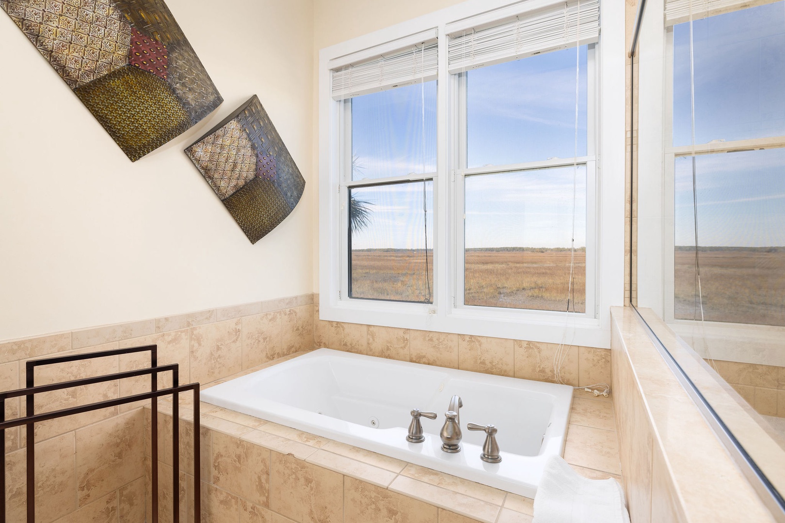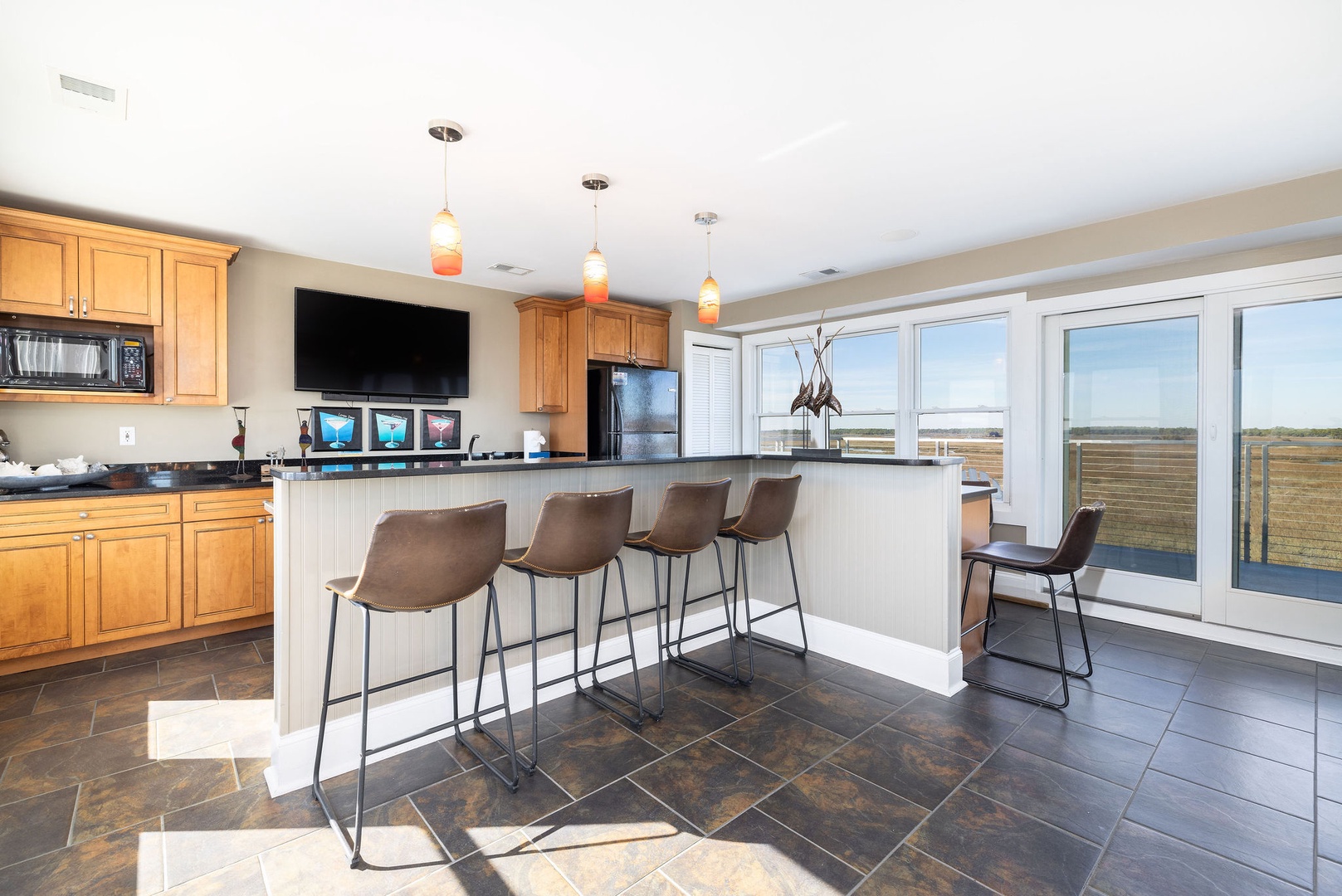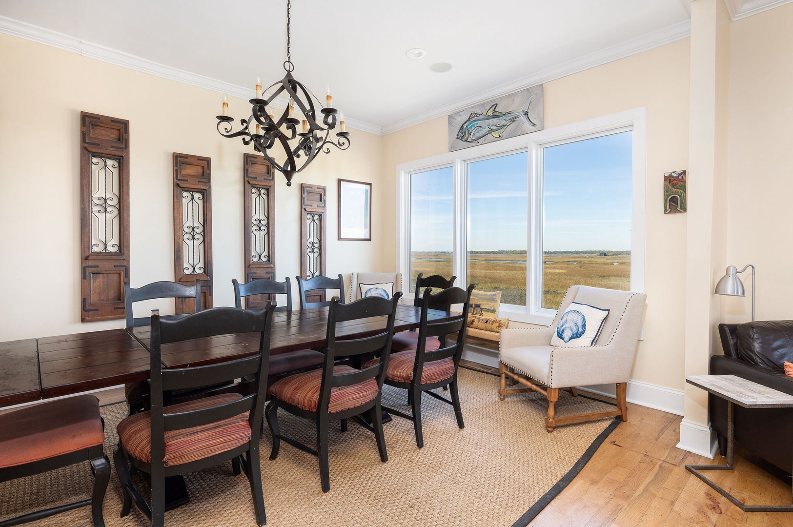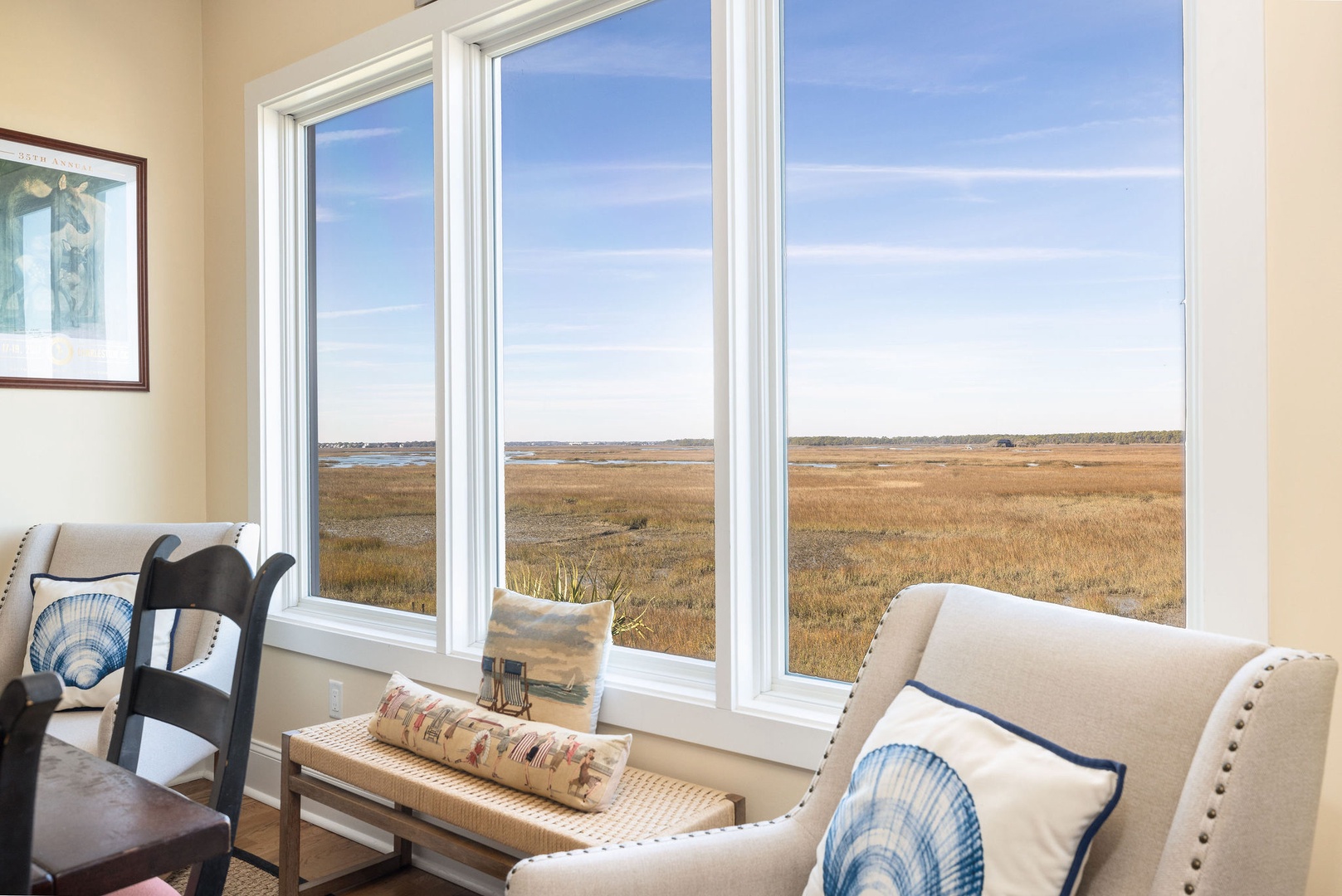 Marsh-Facing Deck: Perfect for wildlife viewing and soaking in the tranquil marsh views.