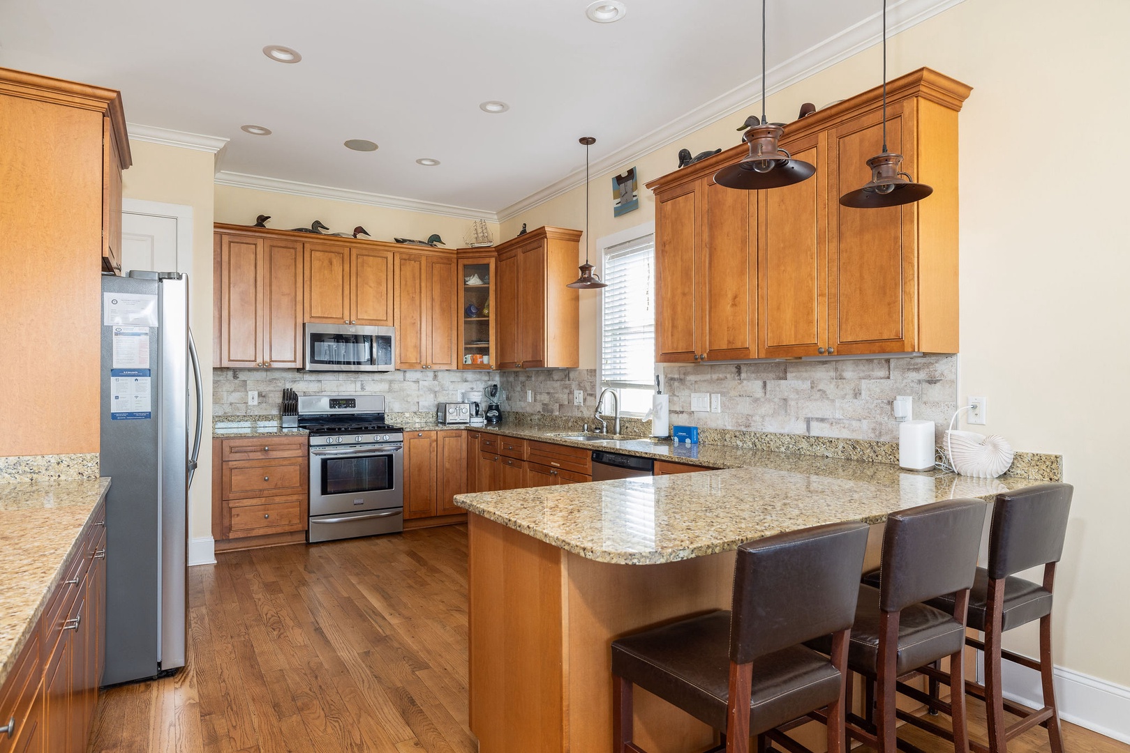 Four full bathrooms and one half-bath provide convenience and privacy for all guests.
