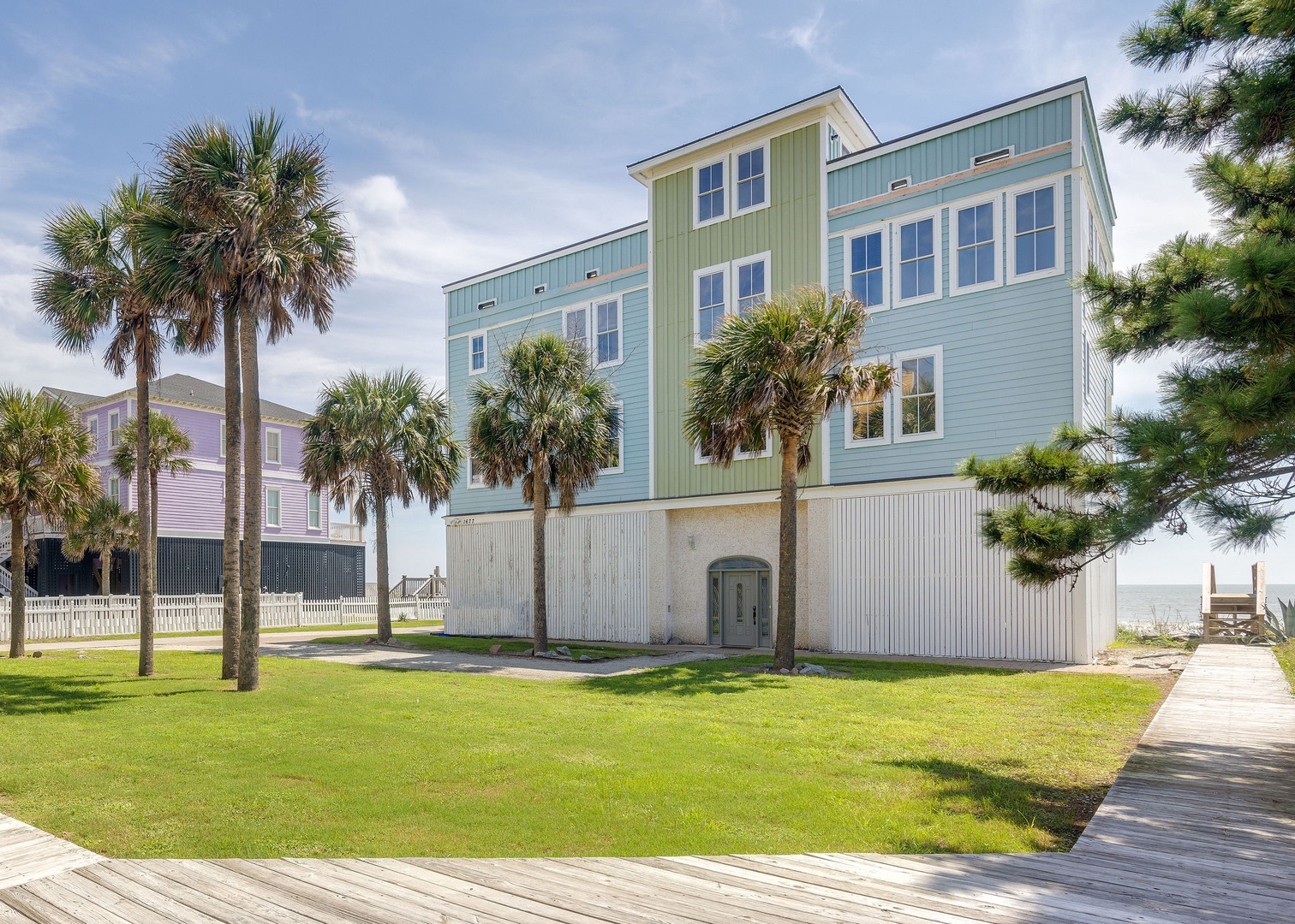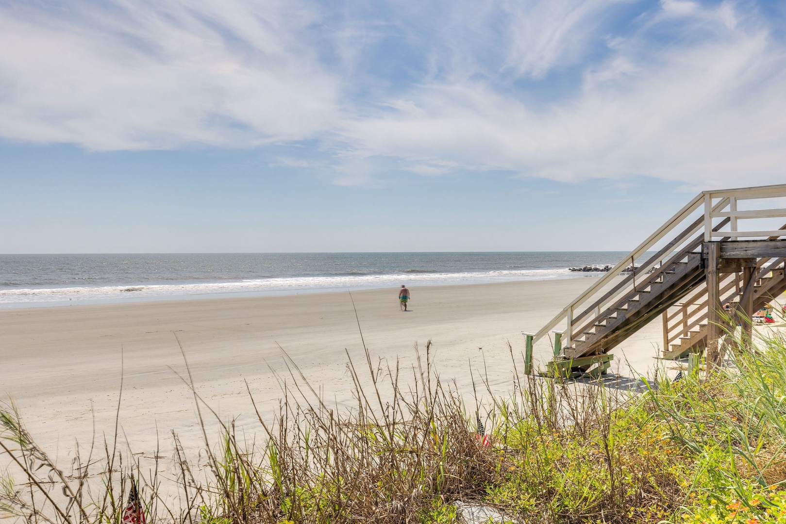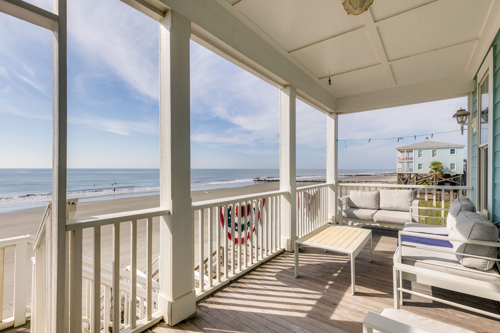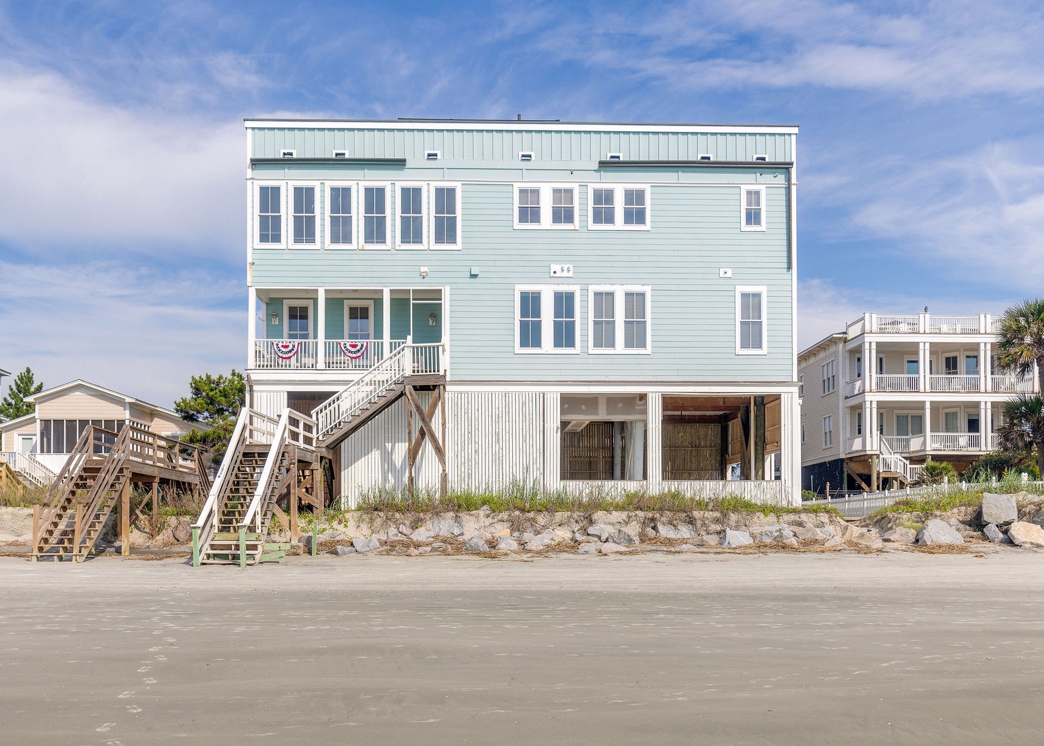 Welcome to Seascape, a stunning 4-bedroom, 4-bathroom oceanfront home located on Folly Beach. This beach house offers 360-degree views of the ocean and Folly River, a reverse floor plan to maximize the scenery, and private beach access. With a rooftop deck, two living areas, and spacious accommodations, this home is perfect for families or groups looking for an unforgettable coastal getaway. Small, well-behaved dogs are welcome—please inquire for details.