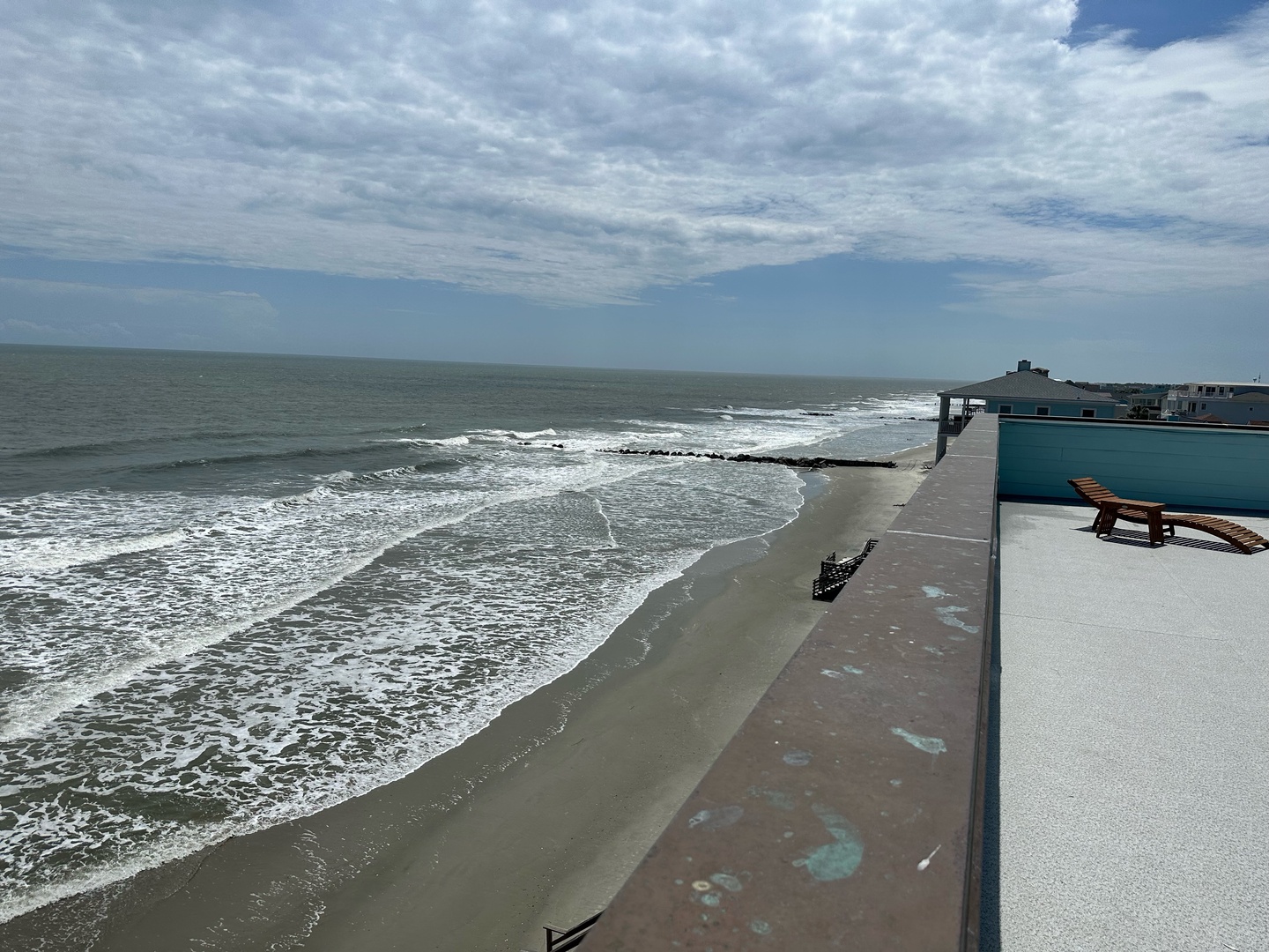 Rooftop Deck: Spectacular 360-degree views of the ocean and Folly River, perfect for sunrises, sunsets, and stargazing.