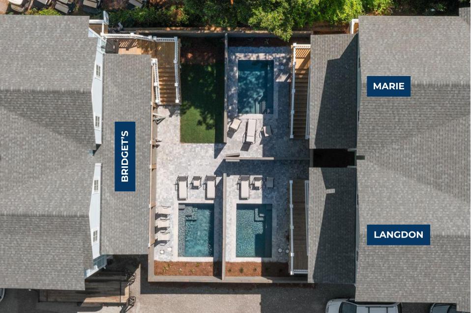 Bridget’s Bungalow: A 7-bedroom single-family home across the street, accommodating up to 36 guests.