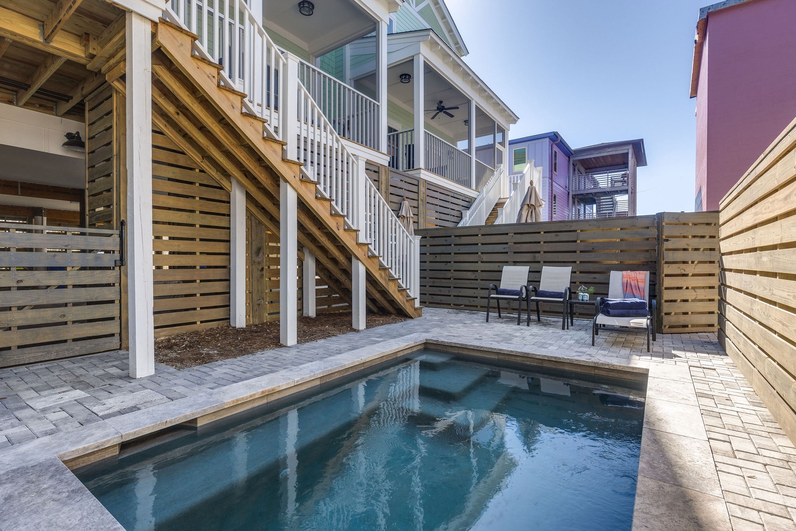 Langdon Lagoon: Attached duplex with 4 bedrooms and a private pool, accommodating up to 20 guests when rented together.