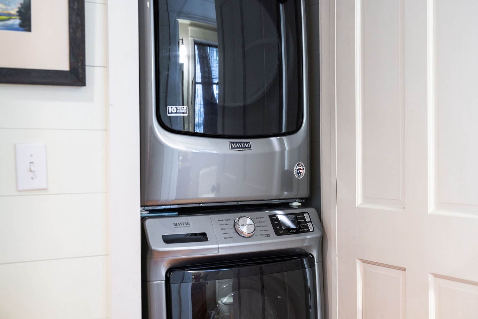 The cozy living space is perfect for unwinding after a day at the beach or exploring Folly Beach. With a warm and inviting atmosphere, you’ll feel right at home.