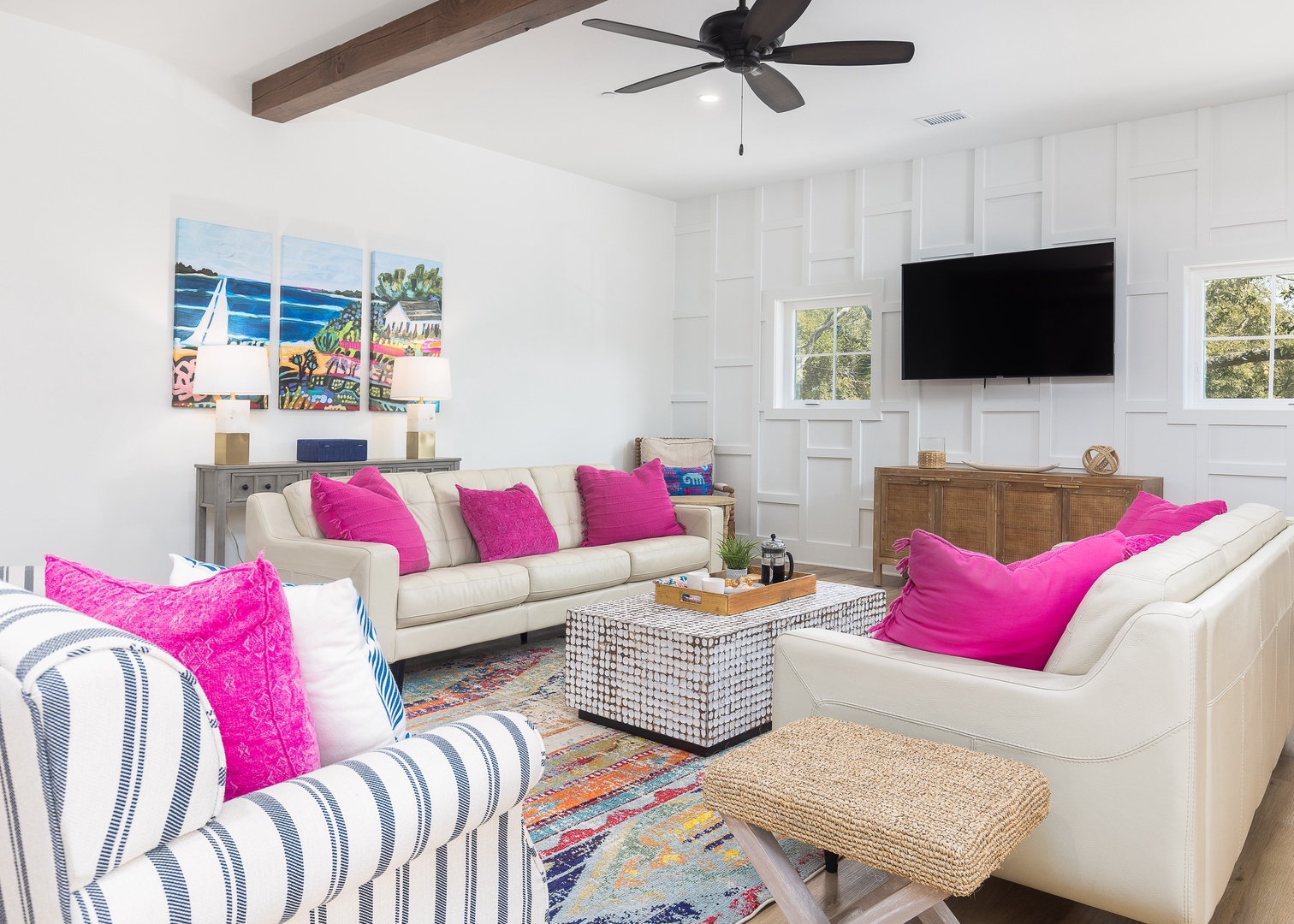 Lemon Twist and Orange Crush, both 4-bedroom, 4-bath homes with private pools, are located across from Mimosa Manor. Rent all three properties to accommodate up to 36 guests, making this an excellent choice for weddings, family reunions, or multi-family vacations.